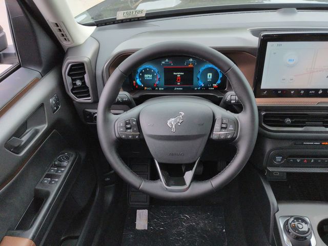 2025 Carbonized Gray Metallic 2025 Ford Bronco Sport Outer Banks Outer Banks 4D Sport Utility 4WD 1.5L EcoBoost 4D Sport Utility, 1.5L EcoBoost, 8-Speed Automatic, 4WD, 13.2" LCD Centerstack Touchscreen, 4-Wheel Disc Brakes, ABS brakes, AM/FM radio: SiriusXM, Auto High-beam Headlights, Auto LED Headlights, Auto-dimming Rear-View mirror, Automatic temperature control, Backup Camera, Brake assist, Compass, Delay-off headlights, Electronic Stability Control, Emergency communication system: SYNC 4 911 Assist, Equipment Group 300A, Four wheel independent suspension, Front dual zone A/C, Front fog lights, Fully automatic headlights, Garage door transmitter, Heated door mirrors, Heated steering wheel, Illuminated entry, Low tire pressure warning, Memory seat, Outside temperature display, Overhead console, Panic alarm, Power door mirrors, Power windows, Push Button Start, Radio data system, Rear Parking Sensors, Remote keyless entry, Remote Start, Security system, SiriusXM, Speed control, Speed-sensing steering, Steering wheel mounted audio controls, SYNC 4 w/Enhanced Voice Recognition, Traction control. Equipment Group 300A, 4D Sport Utility, 1.5L EcoBoost, 8-Speed Automatic, 4WD, 13.2" LCD Centerstack Touchscreen, 4-Wheel Disc Brakes, ABS brakes, AM/FM radio: SiriusXM, Auto High-beam Headlights, Auto LED Headlights, Auto-dimming Rear-View mirror, Automatic temperature control, Backup Camera, Brake assist, Compass, Delay-off headlights, Electronic Stability Control, Emergency communication system: SYNC 4 911 Assist, Four wheel independent suspension, Front dual zone A/C, Front fog lights, Fully automatic headlights, Garage door transmitter, Heated door mirrors, Heated steering wheel, Illuminated entry, Low tire pressure warning, Memory seat, Outside temperature display, Overhead console, Panic alarm, Power door mirrors, Power windows, Push Button Start, Radio data system, Rear Parking Sensors, Remote keyless entry, Remote Start, Security system, SiriusXM, Speed control, Speed-sensing steering, Steering wheel mounted audio controls, SYNC 4 w/Enhanced Voice Recognition, Traction control, 6 Speakers, Air Conditioning, Alloy wheels, AM/FM Stereo, Driver door bin, Driver vanity mirror, Dual front impact airbags, Dual front side impact airbags, Front anti-roll bar, Front Bucket Seats, Front Center Armrest, Front Driver/Passenger Seat Back Map Pockets, Front reading lights, Heated front seats, Knee airbag, Occupant sensing airbag, Overhead airbag, Passenger door bin, Passenger vanity mirror, Power driver seat, Power passenger seat, Power steering, Premium Trimmed Front Bucket Seats w/Ebony/Roast, Rain sensing wipers, Rear anti-roll bar, Rear reading lights, Rear seat center armrest, Rear window defroster, Rear window wiper, Speed-Sensitive Wipers, Split folding rear seat, Tachometer, Telescoping steering wheel, Tilt steering wheel, Trip computer, Variably intermittent wipers, and Wheels: 18" Ebony Black-Painted Aluminum.