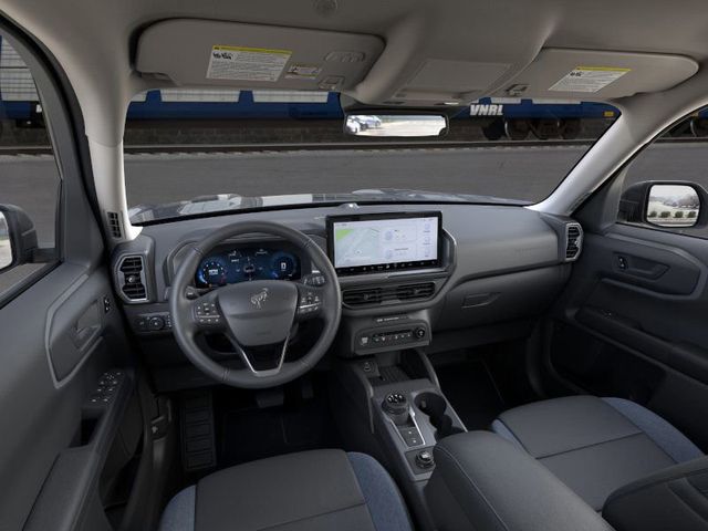 2025 Azure Gray Metallic Tri-Coat 2025 Ford Bronco Sport Outer Banks Outer Banks 4D Sport Utility 4WD 1.5L EcoBoost Outer Banks Tech Package+ (B&O Sound System by Bang & Olufsen, Connected Navigation, and HD Radio), 360-Degree Camera w/Trail & Split View, 4-Wheel Disc Brakes, 6 Speakers, ABS brakes, Air Conditioning, Alloy wheels, AM/FM radio: SiriusXM, AM/FM Stereo, Auto High-beam Headlights, Auto-dimming Rear-View mirror, Automatic temperature control, Brake assist, Compass, Delay-off headlights, Driver door bin, Driver vanity mirror, Dual front impact airbags, Dual front side impact airbags, Electronic Stability Control, Emergency communication system: SYNC 4 911 Assist, Four wheel independent suspension, Front anti-roll bar, Front Bucket Seats, Front Center Armrest, Front Driver/Passenger Seat Back Map Pockets, Front dual zone A/C, Front fog lights, Front Parking Sensors, Front reading lights, Fully automatic headlights, Garage door transmitter, Heated door mirrors, Heated front seats, Heated steering wheel, Illuminated entry, Knee airbag, Low tire pressure warning, Memory seat, Occupant sensing airbag, Outside temperature display, Overhead airbag, Overhead console, Panic alarm, Passenger door bin, Passenger vanity mirror, Power door mirrors, Power driver seat, Power passenger seat, Power steering, Power windows, Premium Trimmed Front Bucket Seats w/Ebony/Roast, Premium Trimmed Front Bucket Seats w/Platinum Blue, Radio data system, Rain sensing wipers, Rear anti-roll bar, Rear Parking Sensors, Rear reading lights, Rear seat center armrest, Rear window defroster, Rear window wiper, Remote keyless entry, Reverse Brake Assist, Security system, SiriusXM, Speed control, Speed-sensing steering, Speed-Sensitive Wipers, Split folding rear seat, Steering wheel mounted audio controls, SYNC 4 w/Enhanced Voice Recognition, Tachometer, Telescoping steering wheel, Tilt steering wheel, Traction control, Trip computer, Variably intermittent wipers, and Wheels: 18" Ebony Black-Painted Aluminum.
