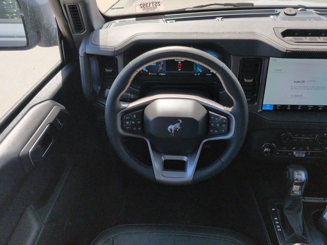 2025 Carbonized Gray Metallic 2025 Ford Bronco Badlands Badlands 4D Sport Utility 4WD 2.7L EcoBoost V6 4D Sport Utility, 2.7L EcoBoost V6, 10-Speed Automatic, 4WD, 12" LCD Productivity Touchscreen, 360-Degree Camera, 360-Degree Camera, Adaptive Cruise Control, Adaptive Cruise Control, Auto Emergency Braking, Backup Camera, Bluetooth w/ Audio Streaming, Body Color-Painted Hard Top, Equipment Group 334A Lux Package, Evasive Steering Assist, Front Parking Sensors, Hard Top Sound Deadening Headliner, Hill Start Assist, Information on Demand Panel, Pre Collision Assist w/ AEB, Push Button Start, Radio: B&O Sound System by Bang & Olufsen, Rear-Window Defroster & Washer, Remote Start, Sideview Mirrors, Universal Garage Door Opener. Equipment Group 334A Lux Package (360-Degree Camera, Adaptive Cruise Control, Evasive Steering Assist, Front Parking Sensors, Information on Demand Panel, Radio: B&O Sound System by Bang & Olufsen, Sideview Mirrors, Universal Garage Door Opener, and Connected Navigation), 4D Sport Utility, 2.7L EcoBoost V6, 10-Speed Automatic, 4WD, 12" LCD Productivity Touchscreen, 360-Degree Camera, Adaptive Cruise Control, Auto Emergency Braking, Backup Camera, Bluetooth w/ Audio Streaming, Body Color-Painted Hard Top, Hard Top Sound Deadening Headliner, Hill Start Assist, Pre Collision Assist w/ AEB, Push Button Start, Rear-Window Defroster & Washer, Remote Start, 4-Wheel Disc Brakes, 4.7 Axle Ratio, 7 Speakers, ABS brakes, Air Conditioning, Alloy wheels, AM/FM radio: SiriusXM with 360L, AM/FM Stereo, Auto High-beam Headlights, Auto-dimming Rear-View mirror, Brake assist, Compass, Delay-off headlights, Driver door bin, Driver vanity mirror, Dual front impact airbags, Dual front side impact airbags, Electronic Stability Control, Emergency communication system: 911 Assist, Exterior Parking Camera Rear, Front anti-roll bar, Front Bucket Seats, Front Center Armrest, Front fog lights, Front reading lights, Front wheel independent suspension, Fully automatic headlights, Heated door mirrors, Heated front seats, Heated steering wheel, Illuminated entry, Integrated roll-over protection, Leather Shift Knob, Leather-Trimmed/Vinyl Bucket Seats, Low tire pressure warning, Marine Grade Vinyl Heated Bucket Seats, Occupant sensing airbag, Outside temperature display, Overhead airbag, Overhead console, Panic alarm, Passenger door bin, Passenger vanity mirror, Power door mirrors, Power steering, Power windows, Radio data system, Remote keyless entry, Security system, SiriusXM w/360L, Speed control, Split folding rear seat, Steering wheel mounted audio controls, SYNC 4, Tachometer, Telescoping steering wheel, Tilt steering wheel, Traction control, Trip computer, Variably intermittent wipers, and Voltmeter.