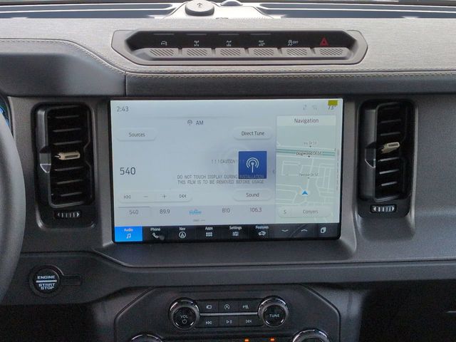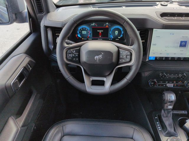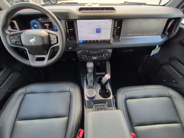 2025 Shadow Black 2025 Ford Bronco Badlands Badlands 4D Sport Utility 4WD 2.7L EcoBoost V6 4D Sport Utility, 2.7L EcoBoost V6, 10-Speed Automatic, 4WD, 12" LCD Productivity Touchscreen, 360-Degree Camera, Adaptive Cruise Control, Auto Emergency Braking, Auto LED Headlights, Backup Camera, Equipment Group 334A Lux Package, Evasive Steering Assist, Front Parking Sensors, Hard Top Sound Deadening Headliner, Hill Start Assist, Information on Demand Panel, Pre Collision Assist w/ AEB, Push Button Start, Radio: B&O Sound System by Bang & Olufsen, Rear-Window Defroster & Washer, Remote Start, Shadow Black Painted Hard Top, Sideview Mirrors, Trailer Tow Package (DIO), Universal Garage Door Opener. Equipment Group 334A Lux Package (360-Degree Camera, Adaptive Cruise Control, Evasive Steering Assist, Front Parking Sensors, Information on Demand Panel, Radio: B&O Sound System by Bang & Olufsen, Sideview Mirrors, Universal Garage Door Opener, and Connected Navigation), Trailer Tow Package (DIO), 4D Sport Utility, 2.7L EcoBoost V6, 10-Speed Automatic, 4WD, 12" LCD Productivity Touchscreen, Auto Emergency Braking, Auto LED Headlights, Backup Camera, Hard Top Sound Deadening Headliner, Hill Start Assist, Pre Collision Assist w/ AEB, Push Button Start, Rear-Window Defroster & Washer, Remote Start, Shadow Black Painted Hard Top, 4-Wheel Disc Brakes, 4.7 Axle Ratio, 7 Speakers, ABS brakes, Air Conditioning, Alloy wheels, AM/FM radio: SiriusXM with 360L, AM/FM Stereo, Auto High-beam Headlights, Auto-dimming Rear-View mirror, Brake assist, Compass, Delay-off headlights, Driver door bin, Driver vanity mirror, Dual front impact airbags, Dual front side impact airbags, Electronic Stability Control, Emergency communication system: 911 Assist, Exterior Parking Camera Rear, Front anti-roll bar, Front Bucket Seats, Front Center Armrest, Front fog lights, Front reading lights, Front wheel independent suspension, Fully automatic headlights, Heated door mirrors, Heated front seats, Heated steering wheel, Illuminated entry, Integrated roll-over protection, Leather Shift Knob, Leather-Trimmed/Vinyl Bucket Seats, Low tire pressure warning, Marine Grade Vinyl Heated Bucket Seats, Occupant sensing airbag, Outside temperature display, Overhead airbag, Overhead console, Panic alarm, Passenger door bin, Passenger vanity mirror, Power door mirrors, Power steering, Power windows, Radio data system, Remote keyless entry, Security system, SiriusXM w/360L, Speed control, Split folding rear seat, Steering wheel mounted audio controls, SYNC 4, Tachometer, Telescoping steering wheel, Tilt steering wheel, Traction control, Trip computer, Variably intermittent wipers, and Voltmeter.