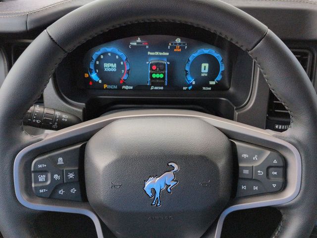 2025 Shadow Black 2025 Ford Bronco Badlands Badlands 4D Sport Utility 4WD 2.7L EcoBoost V6 4D Sport Utility, 2.7L EcoBoost V6, 10-Speed Automatic, 4WD, 12" LCD Productivity Touchscreen, 360-Degree Camera, 360-Degree Camera, Adaptive Cruise Control, Adaptive Cruise Control, Auto Emergency Braking, Auto LED Headlights, Backup Camera, Equipment Group 334A Lux Package, Evasive Steering Assist, Front Parking Sensors, Hard Top Sound Deadening Headliner, Hill Start Assist, Information on Demand Panel, Pre Collision Assist w/ AEB, Push Button Start, Radio: B&O Sound System by Bang & Olufsen, Rear-Window Defroster & Washer, Remote Start, Shadow Black Painted Hard Top, Sideview Mirrors, Trailer Tow Package (DIO), Universal Garage Door Opener. Equipment Group 334A Lux Package (360-Degree Camera, Adaptive Cruise Control, Evasive Steering Assist, Front Parking Sensors, Information on Demand Panel, Radio: B&O Sound System by Bang & Olufsen, Sideview Mirrors, Universal Garage Door Opener, and Connected Navigation), Trailer Tow Package (DIO), 4D Sport Utility, 2.7L EcoBoost V6, 10-Speed Automatic, 4WD, 12" LCD Productivity Touchscreen, 360-Degree Camera, Adaptive Cruise Control, Auto Emergency Braking, Auto LED Headlights, Backup Camera, Hard Top Sound Deadening Headliner, Hill Start Assist, Pre Collision Assist w/ AEB, Push Button Start, Rear-Window Defroster & Washer, Remote Start, Shadow Black Painted Hard Top, 4-Wheel Disc Brakes, 4.7 Axle Ratio, 7 Speakers, ABS brakes, Air Conditioning, Alloy wheels, AM/FM radio: SiriusXM with 360L, AM/FM Stereo, Auto High-beam Headlights, Auto-dimming Rear-View mirror, Brake assist, Compass, Delay-off headlights, Driver door bin, Driver vanity mirror, Dual front impact airbags, Dual front side impact airbags, Electronic Stability Control, Emergency communication system: 911 Assist, Exterior Parking Camera Rear, Front anti-roll bar, Front Bucket Seats, Front Center Armrest, Front fog lights, Front reading lights, Front wheel independent suspension, Fully automatic headlights, Heated door mirrors, Heated front seats, Heated steering wheel, Illuminated entry, Integrated roll-over protection, Leather Shift Knob, Leather-Trimmed/Vinyl Bucket Seats, Low tire pressure warning, Marine Grade Vinyl Heated Bucket Seats, Occupant sensing airbag, Outside temperature display, Overhead airbag, Overhead console, Panic alarm, Passenger door bin, Passenger vanity mirror, Power door mirrors, Power steering, Power windows, Radio data system, Remote keyless entry, Security system, SiriusXM w/360L, Speed control, Split folding rear seat, Steering wheel mounted audio controls, SYNC 4, Tachometer, Telescoping steering wheel, Tilt steering wheel, Traction control, Trip computer, Variably intermittent wipers, and Voltmeter.