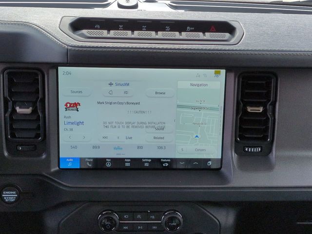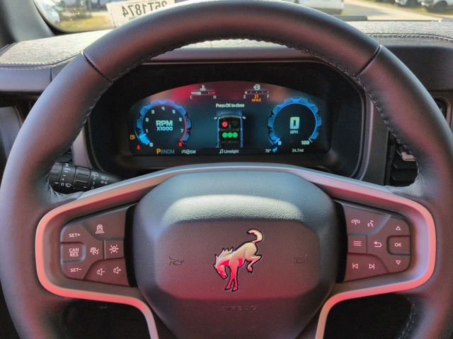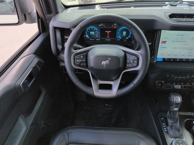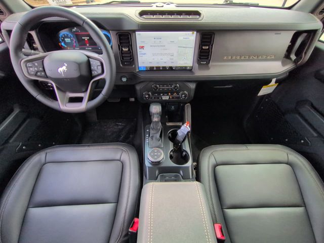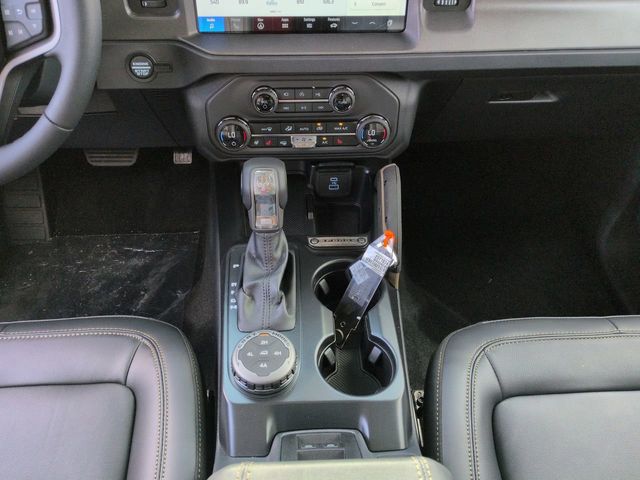 2025 Desert Sand 2025 Ford Bronco Badlands Badlands 4D Sport Utility 4WD 2.7L EcoBoost V6 Equipment Group 334A Lux Package (2-Door Intelligent Access w/Lock/Unlock, 360-Degree Camera, Adaptive Cruise Control, Ambient Footwell Lighting, Connected Navigation, Dr & Pass Illuminated Sliding Visor Vanity Mirrors, Dual Smart Charging USB Ports, Dual-Zone Electronic Automatic Temperature Control, Evasive Steering Assist, Front Parking Sensors, Front Row Heated Seats, Information on Demand Panel, Power Outlet - Back Side of Center Floor Console, Radio: B&O Sound System by Bang & Olufsen, Rear Parking Sensors, Sideview Mirrors, and Universal Garage Door Opener), 4-Wheel Disc Brakes, 4.7 Axle Ratio, 7 Speakers, ABS brakes, Air Conditioning, Alloy wheels, AM/FM radio: SiriusXM with 360L, AM/FM Stereo, Auto High-Beam Headlamps, Auto High-beam Headlights, Auto-dimming Rear-View mirror, BLIS Blind Spot Information System, Body Color-Painted Hard Top, Brake assist, Compass, Delay-off headlights, Driver door bin, Driver vanity mirror, Dual front impact airbags, Dual front side impact airbags, Electronic Stability Control, Emergency communication system: 911 Assist, Exterior Parking Camera Rear, Front anti-roll bar, Front Bucket Seats, Front Center Armrest, Front fog lights, Front reading lights, Front wheel independent suspension, Fully automatic headlights, Hard Top Sound Deadening Headliner, Heated door mirrors, Heated front seats, Heated steering wheel, Illuminated entry, Integrated roll-over protection, Lane-Keeping System, Leather Shift Knob, Leather-Trimmed/Vinyl Bucket Seats, Low tire pressure warning, Marine Grade Vinyl Heated Bucket Seats, Occupant sensing airbag, Outside temperature display, Overhead airbag, Overhead console, Panic alarm, Passenger door bin, Passenger vanity mirror, Power door mirrors, Power steering, Power windows, Pre-Collision Assist w/Automatic Emergency Braking, Radio data system, Rear-View Camera, Rear-Window Defroster & Washer, Remote keyless entry, Security system, SiriusXM w/360L, Speed control, Split folding rear seat, Steering wheel mounted audio controls, SYNC 4, Tachometer, Telescoping steering wheel, Tilt steering wheel, Traction control, Trip computer, Variably intermittent wipers, Voltmeter, and Wheels: 17" Carbonized Gray-Painted Aluminum.