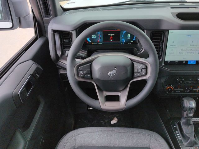 2025 Oxford White 2025 Ford Bronco Base 4D Sport Utility 4WD 2.3L EcoBoost I-4 4D Sport Utility, 2.3L EcoBoost I-4, 10-Speed Automatic, 4WD, 12" LCD Productivity Touchscreen, Auto Emergency Braking, Auto LED Headlights, Backup Camera, Equipment Group 101A, Pre Collision Assist w/ AEB, Push Button Start. Equipment Group 101A, 4D Sport Utility, 2.3L EcoBoost I-4, 10-Speed Automatic, 4WD, 12" LCD Productivity Touchscreen, Auto Emergency Braking, Auto LED Headlights, Backup Camera, Pre Collision Assist w/ AEB, Push Button Start, 4-Wheel Disc Brakes, 4.46 Axle Ratio, 7 Speakers, ABS brakes, Air Conditioning, AM/FM radio: SiriusXM with 360L, AM/FM Stereo, Auto High-beam Headlights, Brake assist, Cloth Bucket Seats, Compass, Delay-off headlights, Driver door bin, Driver vanity mirror, Dual front impact airbags, Dual front side impact airbags, Electronic Stability Control, Emergency communication system: 911 Assist, Exterior Parking Camera Rear, Front anti-roll bar, Front Bucket Seats, Front Center Armrest, Front reading lights, Front wheel independent suspension, Fully automatic headlights, Heated door mirrors, Illuminated entry, Integrated roll-over protection, Low tire pressure warning, Occupant sensing airbag, Outside temperature display, Overhead airbag, Overhead console, Panic alarm, Passenger door bin, Passenger vanity mirror, Power door mirrors, Power steering, Power windows, Radio data system, Remote keyless entry, Security system, SiriusXM w/360L, Speed control, Split folding rear seat, Steering wheel mounted audio controls, SYNC 4, Tachometer, Telescoping steering wheel, Tilt steering wheel, Traction control, Trip computer, Variably intermittent wipers, and Wheels: 16" Bright Polished Silver-Painted Steel. $1,000 - Exp. 12/31/2026 Retail Trade Assistance. Must trade in a vehicle to qualify $1,000 - Exp. 12/31/2026 Dealer Finance Assistance. Must finance through dealer lender to qualify.
