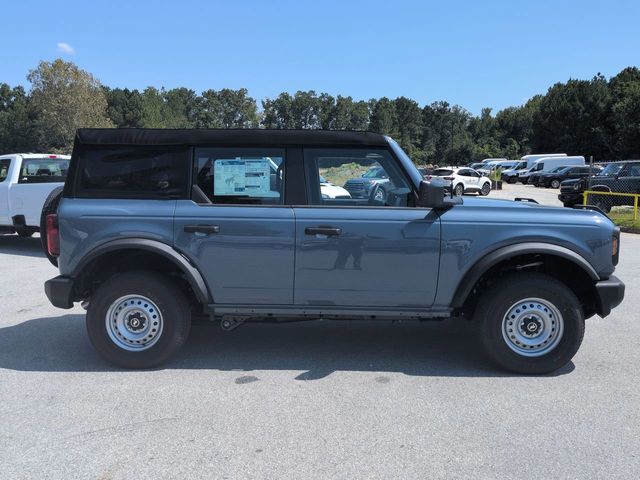 2025 Azure Gray Metallic Tri-Coat 2025 Ford Bronco Base CC 4D Sport Utility 4WD 2.3L EcoBoost I-4 4D Sport Utility, 2.3L EcoBoost I-4, 10-Speed Automatic, 4WD, 12" LCD Productivity Touchscreen, Auto Emergency Braking, Auto LED Headlights, Backup Camera, Equipment Group 101A, Hill Start Assist, Pre Collision Assist w/ AEB. Equipment Group 101A, 4D Sport Utility, 2.3L EcoBoost I-4, 10-Speed Automatic, 4WD, 12" LCD Productivity Touchscreen, Auto Emergency Braking, Auto LED Headlights, Backup Camera, Hill Start Assist, Pre Collision Assist w/ AEB, 4-Wheel Disc Brakes, 4.46 Axle Ratio, 7 Speakers, ABS brakes, Air Conditioning, AM/FM radio: SiriusXM with 360L, AM/FM Stereo, Auto High-beam Headlights, Brake assist, Cloth Bucket Seats, Compass, Delay-off headlights, Driver door bin, Driver vanity mirror, Dual front impact airbags, Dual front side impact airbags, Electronic Stability Control, Emergency communication system: 911 Assist, Exterior Parking Camera Rear, Front anti-roll bar, Front Bucket Seats, Front Center Armrest, Front reading lights, Front wheel independent suspension, Fully automatic headlights, Heated door mirrors, Illuminated entry, Integrated roll-over protection, Low tire pressure warning, Occupant sensing airbag, Outside temperature display, Overhead airbag, Overhead console, Panic alarm, Passenger door bin, Passenger vanity mirror, Power door mirrors, Power steering, Power windows, Radio data system, Remote keyless entry, Security system, SiriusXM w/360L, Speed control, Split folding rear seat, Steering wheel mounted audio controls, SYNC 4, Tachometer, Telescoping steering wheel, Tilt steering wheel, Traction control, Trip computer, Variably intermittent wipers, and Wheels: 16" Bright Polished Silver-Painted Steel.