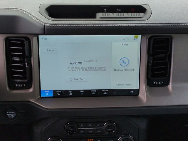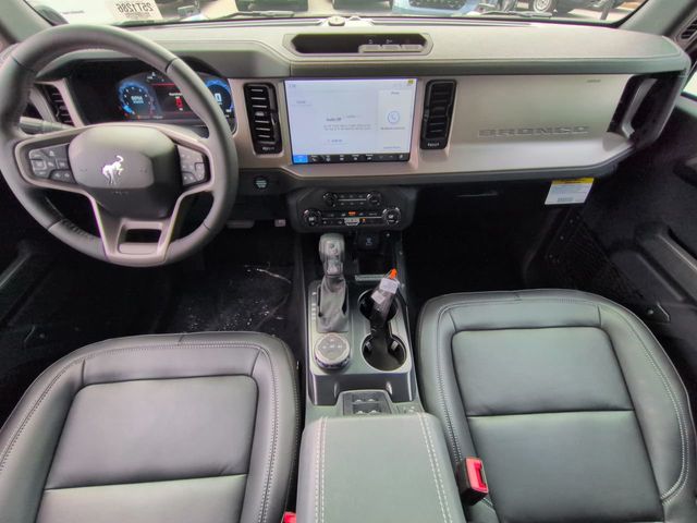 2025 Shadow Black 2025 Ford Bronco Outer Banks Outer Banks 4D Sport Utility 4WD 2.7L EcoBoost V6 4D Sport Utility, 2.7L EcoBoost V6, 10-Speed Automatic, 4WD, 12" LCD Productivity Touchscreen, 360-Degree Camera, 360-Degree Camera, Adaptive Cruise Control, Adaptive Cruise Control, AM/FM radio: SiriusXM with 360L, Auto LED Headlights, Automatic temperature control, Backup Camera, Equipment Group 314A Lux Package, Evasive Steering Assist, Front Parking Sensors, Hard Top Sound Deadening Headliner, Hill Start Assist, Information on Demand Panel, Leather Seats, Navigation system: Connected Navigation, Push Button Start, Radio: B&O Sound System by Bang & Olufsen, Rear-Window Defroster & Washer, Shadow Black-Painted Hard Top, Sideview Mirrors, SiriusXM w/360L, Steering wheel mounted audio controls, Trailer Tow Package (DIO), Universal Garage Door Opener. Equipment Group 314A Lux Package (360-Degree Camera, Adaptive Cruise Control, Evasive Steering Assist, Front Parking Sensors, Information on Demand Panel, Radio: B&O Sound System by Bang & Olufsen, Sideview Mirrors, and Universal Garage Door Opener), Trailer Tow Package (DIO), 4D Sport Utility, 2.7L EcoBoost V6, 10-Speed Automatic, 4WD, 12" LCD Productivity Touchscreen, 360-Degree Camera, Adaptive Cruise Control, AM/FM radio: SiriusXM with 360L, Auto LED Headlights, Automatic temperature control, Backup Camera, Hard Top Sound Deadening Headliner, Hill Start Assist, Leather Seats, Navigation system: Connected Navigation, Push Button Start, Rear-Window Defroster & Washer, Shadow Black-Painted Hard Top, SiriusXM w/360L, Steering wheel mounted audio controls, 18" Bright Machined Aluminum Wheels, 3.73 Axle Ratio, 4-Wheel Disc Brakes, 7 Speakers, ABS brakes, Air Conditioning, Alloy wheels, AM/FM Stereo, Auto High-beam Headlights, Auto-dimming Rear-View mirror, Brake assist, Compass, Connected Navigation, Delay-off headlights, Driver door bin, Driver vanity mirror, Dual front impact airbags, Dual front side impact airbags, Electronic Stability Control, Emergency communication system: 911 Assist, Exterior Parking Camera Rear, Front anti-roll bar, Front Bucket Seats, Front Center Armrest, Front dual zone A/C, Front fog lights, Front reading lights, Front wheel independent suspension, Fully automatic headlights, Heated door mirrors, Heated front seats, Heated Leather-Trimmed/Vinyl Bucket Seats, Heated steering wheel, Illuminated entry, Integrated roll-over protection, Leather Shift Knob, Low tire pressure warning, Occupant sensing airbag, Outside temperature display, Overhead airbag, Overhead console, Panic alarm, Passenger door bin, Passenger vanity mirror, Power door mirrors, Power driver seat, Power passenger seat, Power steering, Power windows, Radio data system, Rear seat center armrest, Remote keyless entry, Security system, Speed control, Split folding rear seat, SYNC 4, Tachometer, Telescoping steering wheel, Tilt steering wheel, Traction control, Trip computer, Variably intermittent wipers, and Voltmeter.