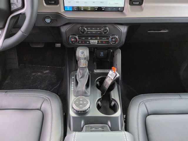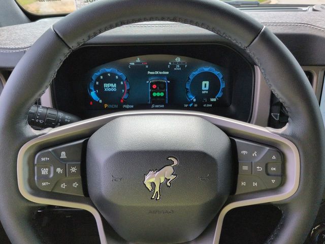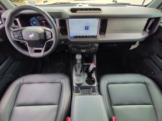 2025 Desert Sand 2025 Ford Bronco Outer Banks Outer Banks 4D Sport Utility 4WD 2.3L EcoBoost I-4 4D Sport Utility, 2.3L EcoBoost I-4, 10-Speed Automatic, 4WD, 12" LCD Productivity Touchscreen, 360-Degree Camera, 360-Degree Camera, 4.7 Final Drive Ratio, Adaptive Cruise Control, Adaptive Cruise Control, Black Appearance Package, Black Molded-In-Color Door Handles, Black Molded-In-Color Fender Flares, Black Molded-In-Color Sideview Mirror Caps, Black-Painted Molded-In-Color Grille, Carbonized Gray Molded-In-Color Hard Top, Equipment Group 314A Lux Package, Evasive Steering Assist, Front Parking Sensors, Hard Top Sound Deadening Headliner, High Clearance Fender Flares, High Clearance Suspension, Hill Start Assist, Information on Demand Panel, Leather Seats, Luxury Package, Navigation system: Connected Navigation, Position-Sensitive Bilstein Shock Absorbers, Radio: B&O Sound System by Bang & Olufsen, Rear-Window Defroster & Washer, Sasquatch Package, Sideview Mirrors, Trailer Tow Package (DIO), Universal Garage Door Opener. Black Appearance Package (Black Molded-In-Color Door Handles, Black Molded-In-Color Fender Flares, Black Molded-In-Color Sideview Mirror Caps, and Black-Painted Molded-In-Color Grille), Equipment Group 314A Lux Package (360-Degree Camera, Adaptive Cruise Control, Evasive Steering Assist, Front Parking Sensors, Information on Demand Panel, Radio: B&O Sound System by Bang & Olufsen, Sideview Mirrors, and Universal Garage Door Opener), Sasquatch Package (4.7 Final Drive Ratio, High Clearance Fender Flares, High Clearance Suspension, and Position-Sensitive Bilstein Shock Absorbers), Trailer Tow Package (DIO), 4D Sport Utility, 2.3L EcoBoost I-4, 10-Speed Automatic, 4WD, 12" LCD Productivity Touchscreen, 360-Degree Camera, Adaptive Cruise Control, Carbonized Gray Molded-In-Color Hard Top, Hard Top Sound Deadening Headliner, Hill Start Assist, Leather Seats, Luxury Package, Navigation system: Connected Navigation, Rear-Window Defroster & Washer, 18" Bright Machined Aluminum Wheels, 4-Wheel Disc Brakes, 7 Speakers, ABS brakes, Air Conditioning, Alloy wheels, AM/FM radio: SiriusXM with 360L, AM/FM Stereo, Auto High-beam Headlights, Auto-dimming Rear-View mirror, Automatic temperature control, Brake assist, Compass, Connected Navigation, Delay-off headlights, Driver door bin, Driver vanity mirror, Dual front impact airbags, Dual front side impact airbags, Electronic Stability Control, Emergency communication system: 911 Assist, Exterior Parking Camera Rear, Front anti-roll bar, Front Bucket Seats, Front Center Armrest, Front dual zone A/C, Front fog lights, Front reading lights, Front wheel independent suspension, Fully automatic headlights, Heated door mirrors, Heated front seats, Heated Leather-Trimmed/Vinyl Bucket Seats, Heated steering wheel, Illuminated entry, Integrated roll-over protection, Leather Shift Knob, Low tire pressure warning, Occupant sensing airbag, Outside temperature display, Overhead airbag, Overhead console, Panic alarm, Passenger door bin, Passenger vanity mirror, Power door mirrors, Power driver seat, Power passenger seat, Power steering, Power windows, Radio data system, Rear seat center armrest, Remote keyless entry, Security system, SiriusXM w/360L, Speed control, Split folding rear seat, Steering wheel mounted audio controls, SYNC 4, Tachometer, Telescoping steering wheel, Tilt steering wheel, Traction control, Trip computer, Variably intermittent wipers, and Voltmeter.