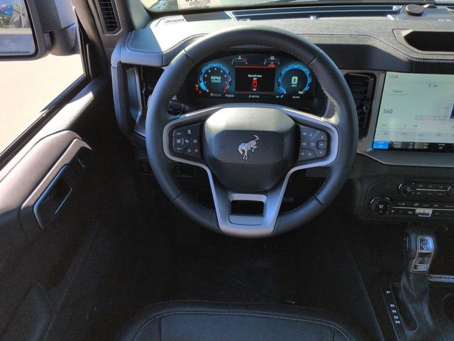 2025 Shadow Black 2025 Ford Bronco Outer Banks Outer Banks 4D Sport Utility 4WD 2.7L EcoBoost V6 Black Appearance Package (Black Molded-In-Color Door Handles, Black Molded-In-Color Fender Flares, Black Molded-In-Color Sideview Mirror Caps, and Black-Painted Molded-In-Color Grille), 18" Bright Machined Aluminum Wheels, 3.73 Axle Ratio, 4-Wheel Disc Brakes, 7 Speakers, ABS brakes, Air Conditioning, Alloy wheels, AM/FM radio: SiriusXM with 360L, AM/FM Stereo, Auto High-beam Headlights, Auto-dimming Rear-View mirror, Automatic temperature control, Brake assist, Compass, Connected Navigation, Delay-off headlights, Driver door bin, Driver vanity mirror, Dual front impact airbags, Dual front side impact airbags, Electronic Stability Control, Emergency communication system: 911 Assist, Exterior Parking Camera Rear, Front anti-roll bar, Front Bucket Seats, Front Center Armrest, Front dual zone A/C, Front fog lights, Front reading lights, Front wheel independent suspension, Fully automatic headlights, Hard Top Sound Deadening Headliner, Heated door mirrors, Heated front seats, Heated Leather-Trimmed/Vinyl Bucket Seats, Heated steering wheel, Illuminated entry, Integrated roll-over protection, Internet access capable: FordPass Connect, Leather Shift Knob, Low tire pressure warning, Navigation system: Connected Navigation, Occupant sensing airbag, Outside temperature display, Overhead airbag, Overhead console, Panic alarm, Passenger door bin, Passenger vanity mirror, Power door mirrors, Power driver seat, Power passenger seat, Power steering, Power windows, Radio data system, Rear seat center armrest, Rear-Window Defroster & Washer, Remote keyless entry, Security system, Shadow Black-Painted Hard Top, SiriusXM w/360L, Speed control, Split folding rear seat, Steering wheel mounted audio controls, SYNC 4, Tachometer, Telescoping steering wheel, Tilt steering wheel, Traction control, Trip computer, Variably intermittent wipers, and Voltmeter. $1,000 - Exp. 12/31/2026 Retail Trade Assistance. Must trade in a vehicle to qualify $1,000 - Exp. 12/31/2026 Dealer Finance Assistance. Must finance through dealer lender to qualify.