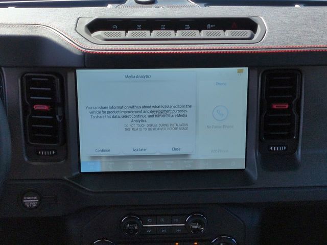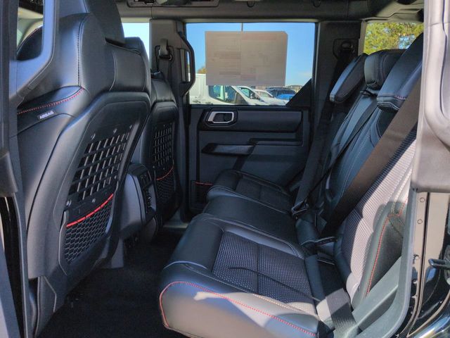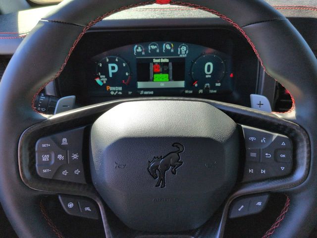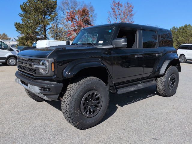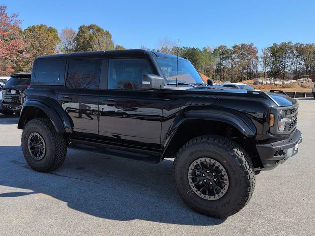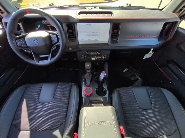 2025 Shadow Black 2025 Ford Bronco Raptor Raptor 4D Sport Utility 4WD 3.0L EcoBoost V6 4D Sport Utility, 3.0L EcoBoost V6, 10-Speed Automatic, 4WD, 12" LCD Productivity Touchscreen, Auto Emergency Braking, Auto LED Headlights, Backup Camera, Equipment Group 374A Lux Package, Fox Suspension, Hard Top Sound Deadening Headliner, Hill Start Assist, Leather Seats, LED Foglights, Navigation system: Connected Navigation, Off Road Package, Pre Collision Assist w/ AEB, Rear-Window Defroster & Washer, Shadow Black Painted Hard Top. Equipment Group 374A Lux Package, 4D Sport Utility, 3.0L EcoBoost V6, 10-Speed Automatic, 4WD, 12" LCD Productivity Touchscreen, Auto Emergency Braking, Auto LED Headlights, Backup Camera, Fox Suspension, Hard Top Sound Deadening Headliner, Hill Start Assist, Leather Seats, LED Foglights, Navigation system: Connected Navigation, Off Road Package, Pre Collision Assist w/ AEB, Rear-Window Defroster & Washer, Shadow Black Painted Hard Top, 12 Speakers, 4-Wheel Disc Brakes, ABS brakes, Air Conditioning, Alloy wheels, AM/FM radio: SiriusXM with 360L, Auto High-beam Headlights, Auto-dimming Rear-View mirror, Automatic temperature control, Brake assist, Compass, Connected Navigation, Convertible HardTop, Convertible roof lining, Delay-off headlights, Driver door bin, Driver vanity mirror, Dual front impact airbags, Dual front side impact airbags, Electronic Stability Control, Emergency communication system: 911 Assist, Exterior Parking Camera Rear, Front anti-roll bar, Front Bucket Seats, Front Center Armrest, Front dual zone A/C, Front fog lights, Front License Plate Bracket, Front reading lights, Front wheel independent suspension, Fully automatic headlights, Garage door transmitter, Glass rear window, Heated door mirrors, Heated front seats, Heated steering wheel, Illuminated entry, Integrated roll-over protection, Interior Carbon Fiber Pack, Leather Shift Knob, Leather-Trimmed/Vinyl Bucket Seats, Low tire pressure warning, Marine Grade Vinyl Bucket Seats, Occupant sensing airbag, Outside temperature display, Overhead airbag, Overhead console, Panic alarm, Passenger door bin, Passenger vanity mirror, Power door mirrors, Power steering, Power windows, Radio data system, Radio: B&O Sound System by Bang & Olufsen, Rear anti-roll bar, Rear seat center armrest, Rear window defroster, Rear window wiper, Remote keyless entry, Security system, SiriusXM w/360L, Speed control, Split folding rear seat, Steering wheel mounted audio controls, SYNC 4, Tachometer, Telescoping steering wheel, Tilt steering wheel, Traction control, Trip computer, Turn signal indicator mirrors, Variably intermittent wipers, Voltmeter, Wheels: 17" Black High Gloss-Painted Aluminum, and Wheels: 17" Dark Carbonized Gray Alloy Painted.