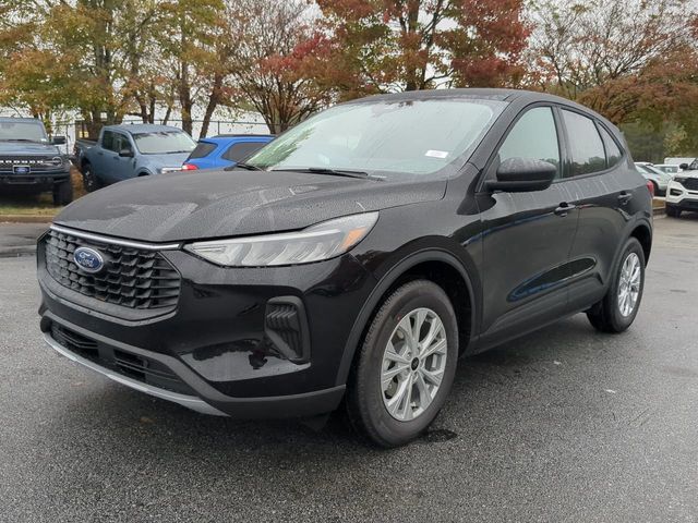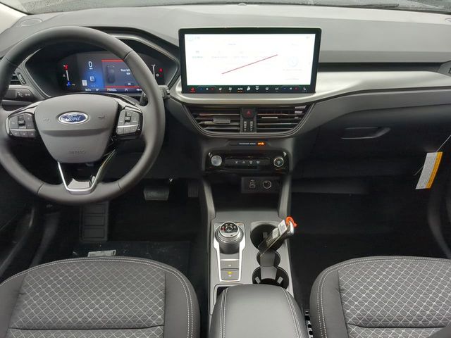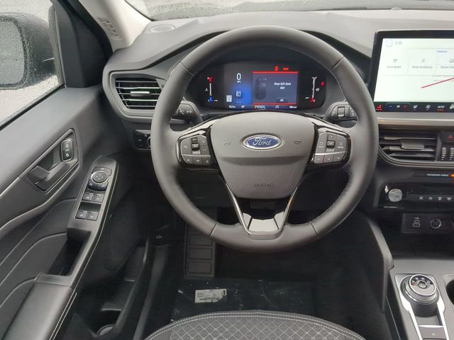 2025 Agate Black Metallic 2025 Ford Escape Active Active 4D Sport Utility FWD 1.5L EcoBoost 13.2" LCD Centerstack Touchscreen, Auto LED Headlights, Backup Camera, Blind Spot Monitoring, BLIS w/ Cross Traffic Alert, Evasive Steering Assist, Lane Keeping System, Parking Sensors, Push Button Start, Remote Start, 1.5L EcoBoost, 8-Speed Automatic. Cold Weather Package (Heated Front Row Seats, Heated Sideview Mirrors, Heated Steering Wheel, and Remote Starter System), Equipment Group 200A, Tech Pack #1 (Adaptive Cruise Control w/Stop-and-Go, Connected Navigation, Ford Co-Pilot360 Assist+, Intersection Assist, Predictive Speed Assist, Rear Parking Sensor, Rear-View Camera, and SYNC 4 w/Enhanced Voice Recognition), 1.5L EcoBoost, 8-Speed Automatic, 3.81 Axle Ratio, 4-Wheel Disc Brakes, 6 Speakers, ABS brakes, Air Conditioning, Alloy wheels, AM/FM radio: SiriusXM, AM/FM Stereo, Auto High-beam Headlights, Automatic temperature control, Brake assist, Bumpers: body-color, Compass, Delay-off headlights, Driver door bin, Driver vanity mirror, Dual front impact airbags, Dual front side impact airbags, Electronic Stability Control, Emergency communication system: SYNC 4 911 Assist, FordPass Connect, Four wheel independent suspension, Front anti-roll bar, Front Bucket Seats, Front Center Armrest, Front dual zone A/C, Front reading lights, Fully automatic headlights, Illuminated entry, Knee airbag, Low tire pressure warning, Occupant sensing airbag, Outside temperature display, Overhead airbag, Overhead console, Panic alarm, Passenger door bin, Passenger vanity mirror, Power door mirrors, Power Liftgate, Power steering, Power windows, Radio data system, Rear anti-roll bar, Rear reading lights, Rear seat center armrest, Rear window defroster, Rear window wiper, Remote keyless entry, Speed control, Speed-sensing steering, Speed-Sensitive Wipers, Split folding rear seat, Spoiler, Steering wheel mounted audio controls, SYNC 4, Tachometer, Telescoping steering wheel, Tilt steering wheel, Traction control, Trip computer, Unique Cloth Front Bucket Seats, Variably intermittent wipers, and Wheels: 17" Shadow Silver-Painted Aluminum.