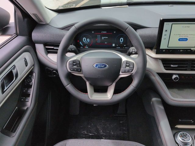 2025 Star White Metallic Tri-Coat 2025 Ford Explorer Active Active 4D Sport Utility RWD 2.3L EcoBoost I-4 4D Sport Utility, 2.3L EcoBoost I-4, 10-Speed Automatic, RWD, 12.3" HD Color Driver Cluster, 13.2" LCD Centerstack Touchscreen, Active Comfort Package, Auto LED Headlights, Backup Camera, Bluetooth w/ Audio Streaming, Equipment Group 200A Standard Package, Front Fascia, Heated ActiveX Seating Material Captain's Chairs, Heated Steering Wheel, Hill Start Assist, Intersection Assist, Multi Zone Climate Control, Navigation System, Remote Start System, Second Row HVAC Controls, Side-Wind Stabilization, Tow Package, Trailer Package, Universal Garage Door Opener (UGDO). Active Comfort Package (Front Fascia, Heated ActiveX Seating Material Captain's Chairs, Heated Steering Wheel, Remote Start System, Second Row HVAC Controls, and Universal Garage Door Opener (UGDO)), Equipment Group 200A Standard Package, 4D Sport Utility, 2.3L EcoBoost I-4, 10-Speed Automatic, RWD, 12.3" HD Color Driver Cluster, 13.2" LCD Centerstack Touchscreen, Auto LED Headlights, Backup Camera, Bluetooth w/ Audio Streaming, Hill Start Assist, Intersection Assist, Multi Zone Climate Control, Navigation System, Side-Wind Stabilization, Tow Package, Trailer Package, 2nd Row 35/30/35 Bench w/E-Z Entry & Armrest, 3.58 Non-Limited Slip Rear Axle, 3rd row seats: bench, 4-Wheel Disc Brakes, 6 Speakers, ABS brakes, Air Conditioning, Alloy wheels, AM/FM Stereo, Apple CarPlay/Android Auto, Auto High-beam Headlights, Automatic temperature control, Brake assist, Bumpers: body-color, Compass, Delay-off headlights, Driver door bin, Driver vanity mirror, Dual front impact airbags, Dual front side impact airbags, Electronic Stability Control, Emergency communication system: 911 Assist, Exterior Parking Camera Rear, Four wheel independent suspension, Front anti-roll bar, Front Bucket Seats, Front Center Armrest, Front dual zone A/C, Front reading lights, Fully automatic headlights, Heated door mirrors, Heated front seats, Illuminated entry, Knee airbag, Leather steering wheel, Low tire pressure warning, Occupant sensing airbag, Outside temperature display, Overhead airbag, Overhead console, Panic alarm, Passenger door bin, Passenger vanity mirror, Power door mirrors, Power driver seat, Power Liftgate, Power passenger seat, Power steering, Power windows, Rear air conditioning, Rear anti-roll bar, Rear reading lights, Rear window defroster, Rear window wiper, Remote keyless entry, Speed control, Speed-sensing steering, Speed-Sensitive Wipers, Split folding rear seat, Spoiler, Steering wheel mounted audio controls, Tachometer, Telescoping steering wheel, Tilt steering wheel, Traction control, Trip computer, Unique Heated Cloth Captain's Chairs, Variably intermittent wipers, and Wheels: 18" Sparkle Silver-Painted Aluminum.