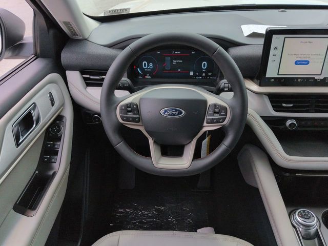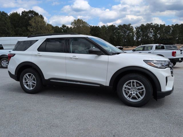2025 Star White Metallic Tri-Coat 2025 Ford Explorer Active Active 4D Sport Utility RWD 2.3L EcoBoost I-4 4D Sport Utility, 2.3L EcoBoost I-4, 10-Speed Automatic, RWD, 12.3" HD Color Driver Cluster, 13.2" LCD Centerstack Touchscreen, 3rd Row Seating, Active Comfort Package, Auto LED Headlights, Backup Camera, Equipment Group 200A Standard Package, Front Fascia, Heated ActiveX Seating Material Captain's Chairs, Heated Steering Wheel, Hill Start Assist, Intersection Assist, Navigation System, Remote Start System, Second Row HVAC Controls, Side-Wind Stabilization, Tow Package, Trailer Package, Universal Garage Door Opener (UGDO). Active Comfort Package (Front Fascia, Heated ActiveX Seating Material Captain's Chairs, Heated Steering Wheel, Remote Start System, Second Row HVAC Controls, and Universal Garage Door Opener (UGDO)), Equipment Group 200A Standard Package, 4D Sport Utility, 2.3L EcoBoost I-4, 10-Speed Automatic, RWD, 12.3" HD Color Driver Cluster, 13.2" LCD Centerstack Touchscreen, 3rd Row Seating, Auto LED Headlights, Backup Camera, Hill Start Assist, Intersection Assist, Navigation System, Side-Wind Stabilization, Tow Package, Trailer Package, 3.58 Non-Limited Slip Rear Axle, 3rd row seats: bench, 4-Wheel Disc Brakes, 6 Speakers, ABS brakes, Air Conditioning, Alloy wheels, AM/FM Stereo, Apple CarPlay/Android Auto, Auto High-beam Headlights, Automatic temperature control, Brake assist, Bumpers: body-color, Compass, Delay-off headlights, Driver door bin, Driver vanity mirror, Dual front impact airbags, Dual front side impact airbags, Electronic Stability Control, Emergency communication system: 911 Assist, Exterior Parking Camera Rear, Four wheel independent suspension, Front anti-roll bar, Front Bucket Seats, Front Center Armrest, Front dual zone A/C, Front reading lights, Fully automatic headlights, Heated door mirrors, Heated front seats, Illuminated entry, Knee airbag, Leather steering wheel, Low tire pressure warning, Occupant sensing airbag, Outside temperature display, Overhead airbag, Overhead console, Panic alarm, Passenger door bin, Passenger vanity mirror, Power door mirrors, Power driver seat, Power Liftgate, Power passenger seat, Power steering, Power windows, Rear air conditioning, Rear anti-roll bar, Rear reading lights, Rear window defroster, Rear window wiper, Remote keyless entry, Speed control, Speed-sensing steering, Speed-Sensitive Wipers, Split folding rear seat, Spoiler, Steering wheel mounted audio controls, Tachometer, Telescoping steering wheel, Tilt steering wheel, Traction control, Trip computer, Unique Heated Cloth Captain's Chairs, Variably intermittent wipers, and Wheels: 18" Sparkle Silver-Painted Aluminum.