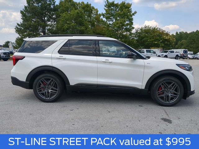 This 2025 Ford Explorer ST-Line in Star White Metallic Tri-Coat features:
