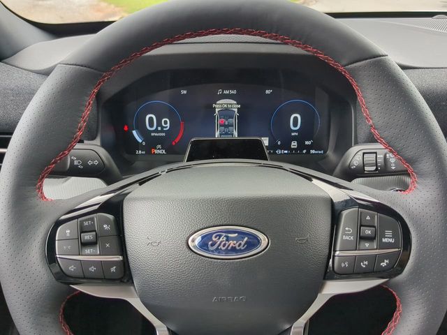 2025 Star White Metallic Tri-Coat 2025 Ford Explorer ST-Line ST-Line 4D Sport Utility RWD 2.3L EcoBoost I-4 12.4" LCD Digital Driver Cluster, 13.2" LCD Centerstack Touchscreen, Android Auto, Apple Carplay, Auto LED Headlights, Backup Camera, Bluetooth w/ Audio Streaming, Hill Start Assist, Intersection Assist, Premium Sound Package, Side-Wind Stabilization, Sport Package, Tow Package, Trailer Package, Wireless Charging Pad, 4D Sport Utility, 2.3L EcoBoost I-4, 10-Speed Automatic, RWD, 110V/150W AC Power Outlet, 2nd Row Heated Seats, Ambient Lighting, Auto-Dimming Interior Rear-View Mirror, Equipment Group 300A Standard Package, Navigation System, Performance Brakes, Power-Folding Sideview Mirrors w/Autofold, Premium Package, Radio: B&O Sound System by Bang & Olufsen, Rain-Sensing Wipers (Front Only), Red Painted Perf Front & Rear Brake Calipers, ST-Line Street Pack, Wheels: 21" Magnetite-Painted Aluminum, Wireless Charging Pad. Equipment Group 300A Standard Package, Premium Package (110V/150W AC Power Outlet, 2nd Row Heated Seats, Ambient Lighting, Auto-Dimming Interior Rear-View Mirror, Power-Folding Sideview Mirrors w/Autofold, Rain-Sensing Wipers (Front Only), and Wireless Charging Pad), ST-Line Street Pack (Performance Brakes, Red Painted Perf Front & Rear Brake Calipers, and Wheels: 21" Magnetite-Painted Aluminum), 4D Sport Utility, 2.3L EcoBoost I-4, 10-Speed Automatic, RWD, Navigation System, Radio: B&O Sound System by Bang & Olufsen, 10 Speakers, 2nd Row Captain's Chairs w/E-Z Entry & Armrest, 3.58 Non-Limited Slip Rear Axle, 3rd row seats: bench, 4-Wheel Disc Brakes, ABS brakes, Air Conditioning, Alloy wheels, Apple CarPlay/Android Auto, Auto High-beam Headlights, Automatic temperature control, Brake assist, Bumpers: body-color, Compass, Delay-off headlights, Driver door bin, Driver vanity mirror, Dual front impact airbags, Dual front side impact airbags, Electronic Stability Control, Emergency communication system: 911 Assist, Exterior Parking Camera Rear, Ford BlueCruise Equipped (1-Year Plan), Four wheel independent suspension, Front anti-roll bar, Front Bucket Seats, Front Center Armrest, Front dual zone A/C, Front fog lights, Front reading lights, Fully automatic headlights, Garage door transmitter, Heated door mirrors, Heated front seats, Heated steering wheel, Heated Unique Cloth Captain's Chairs, Illuminated entry, Knee airbag, Leather steering wheel, Low tire pressure warning, Occupant sensing airbag, Outside temperature display, Overhead airbag, Overhead console, Panic alarm, Passenger door bin, Passenger vanity mirror, Power door mirrors, Power driver seat, Power Liftgate, Power passenger seat, Power steering, Power windows, Rear air conditioning, Rear anti-roll bar, Rear reading lights, Rear window defroster, Rear window wiper, Remote keyless entry, Security system, Speed control, Speed-sensing steering, Speed-Sensitive Wipers, Split folding rear seat, Spoiler, Steering wheel mounted audio controls, Tachometer, Telescoping steering wheel, Tilt steering wheel, Traction control, Trip computer, Variably intermittent wipers, and Wheels: 20" Ebony-Painted Machined Aluminum. $1,000 - Exp. 12/31/2026 Retail Trade Assistance. Must trade in a vehicle to qualify $1,000 - Exp. 12/31/2026 Dealer Finance Assistance. Must finance through dealer lender to qualify.