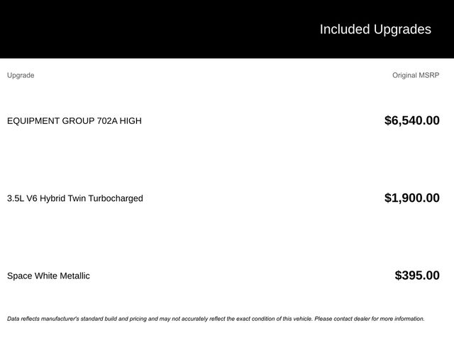 2025 Space White Metallic 2025 Ford F-150 Platinum Platinum 4D SuperCrew 4WD 3.5L PowerBoost Full-Hybrid V6 4D SuperCrew, 3.5L PowerBoost Full-Hybrid V6, 10-Speed Automatic, 4WD, 12" LCD Productivity Touchscreen, 360-Degree Camera, 5G WiFi Hotspot Telematics, Adaptive Cruise Control, Auto Emergency Braking, Auto LED Headlights, Backup Camera, Blind Spot Monitoring, BLIS w/ Cross Traffic Alert, Bluetooth w/ Audio Streaming, Electronic Locking w/3.73 Axle Ratio, Equipment Group 703A Plus, Full Quilted Leather Bucket Seats, Heads-Up Display, Illuminated Scuff Plate, Lane Keeping System, Leather Seats, Leather-Wrapped Instrument Panel, LED Foglights, LED Projector Headlights, Memory Package, Multimedia Package, Navigation system: Connected Navigation, Parking Sensors, Platinum Hood Lettering, Platinum Plus Experience, Platinum Plus Exterior Theme, Platinum Plus Interior Theme, Post Collision Braking, Power Mirror Package, Power Package, Power Running Boards, Power Sliding Rear Window, Pre Collision Assist w/ AEB, Push Button Start, Radio: B&O Unleashed Sound System by Bang & Olufsen, Rain sensing wipers, Remote Start, Reverse Brake Assist, Reverse Sensing, Satin Single Exhaust, Tray Style Floor Liner, Twin Panel Moonroof, Wheel Well Liner, Wheels: 22" Premium Painted w/Chrome Inserts. Equipment Group 703A Plus (Full Quilted Leather Bucket Seats, Heads-Up Display, Illuminated Scuff Plate, Leather-Wrapped Instrument Panel, Platinum Hood Lettering, Platinum Plus Experience, Platinum Plus Exterior Theme, Platinum Plus Interior Theme, Radio: B&O Unleashed Sound System by Bang & Olufsen, Satin Single Exhaust, Tray Style Floor Liner, Twin Panel Moonroof, Wheel Well Liner, and Wheels: 22" Premium Painted w/Chrome Inserts), 4D SuperCrew, 3.5L PowerBoost Full-Hybrid V6, 10-Speed Automatic, 4WD, 12" LCD Productivity Touchscreen, 360-Degree Camera, 5G WiFi Hotspot Telematics, Adaptive Cruise Control, Auto Emergency Braking, Auto LED Headlights, Backup Camera, Blind Spot Monitoring, BLIS w/ Cross Traffic Alert, Bluetooth w/ Audio Streaming, Electronic Locking w/3.73 Axle Ratio, Lane Keeping System, Leather Seats, LED Foglights, LED Projector Headlights, Memory Package, Multimedia Package, Navigation system: Connected Navigation, Parking Sensors, Post Collision Braking, Power Mirror Package, Power Package, Power Running Boards, Power Sliding Rear Window, Pre Collision Assist w/ AEB, Push Button Start, Rain sensing wipers, Remote Start, Reverse Brake Assist, Reverse Sensing, 4-Wheel Disc Brakes, 8 Speakers, ABS brakes, Adjustable pedals, Air Conditioning, Alloy wheels, AM/FM radio: SiriusXM with 360L, Auto High-beam Headlights, Auto tilt-away steering wheel, Auto-dimming door mirrors, Auto-dimming Rear-View mirror, Automatic temperature control, Brake assist, Bumpers: body-color, Compass, Delay-off headlights, Driver door bin, Driver vanity mirror, Dual front impact airbags, Dual front side impact airbags, Electronic Stability Control, Emergency communication system: SYNC 4 911 Assist, Front anti-roll bar, Front Bucket Seats, Front Center Armrest, Front dual zone A/C, Front fog lights, Front reading lights, Front wheel independent suspension, Fully automatic headlights, Garage door transmitter, Heated door mirrors, Heated front seats, Heated rear seats, Heated steering wheel, Illuminated entry, Internet access capable: FordPass Connect 5G, Leather steering wheel, Low tire pressure warning, Memory seat, Occupant sensing airbag, Outside temperature display, Overhead airbag, Overhead console, Panic alarm, Passenger door bin, Passenger vanity mirror, Pedal memory, Power door mirrors, Power dr Price includes: $1,000 - Exp. 12/31/2026 Retail Trade Assistance. Must trade in a vehicle to qualify $1,000 - Exp. 12/31/2026 Dealer Finance Assistance. Must finance through dea