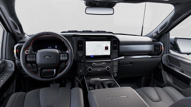 2025 Space White Metallic 2025 Ford F-150 Raptor Raptor 4D SuperCrew 4WD 5.2L V8 4WD. 4WD, 14 Speakers, 17" Cast Aluminum Wheels, 4-Wheel Disc Brakes, ABS brakes, Adjustable pedals, Air Conditioning, Alloy wheels, AM/FM radio: SiriusXM with 360L, Auto High-beam Headlights, Auto tilt-away steering wheel, Auto-dimming door mirrors, Auto-dimming Rear-View mirror, Automatic temperature control, Brake assist, Bumpers: body-color, Compass, Delay-off headlights, Driver door bin, Driver vanity mirror, Dual front impact airbags, Dual front side impact airbags, Electronic Locking w/4.10 Axle Ratio, Electronic Stability Control, Emergency communication system: SYNC 4 911 Assist, Front anti-roll bar, Front Bucket Seats, Front Center Armrest, Front dual zone A/C, Front fog lights, Front reading lights, Front wheel independent suspension, Fully automatic headlights, Garage door transmitter, Heads-Up Display, Heated door mirrors, Heated front seats, Heated rear seats, Heated steering wheel, Illuminated entry, Lane Departure Warning System, Leather steering wheel, Leather Trimmed Seats, Low tire pressure warning, Memory seat, Navigation system: Connected Navigation, Occupant sensing airbag, Outside temperature display, Overhead airbag, Overhead console, Panic alarm, Passenger door bin, Passenger vanity mirror, Pedal memory, Power door mirrors, Power driver seat, Power passenger seat, Power steering, Power windows, Radio data system, Radio: B&O Unleashed Sound System by Bang & Olufsen, Rain sensing wipers, Rear reading lights, Rear step bumper, Rear window defroster, RECARO w/Code Orange Stitching Front Seats, Remote keyless entry, Security system, Speed control, Speed-sensing steering, Split folding rear seat, Steering wheel memory, Steering wheel mounted audio controls, SYNC 4 w/Enhanced Voice Recognition, Tachometer, Telescoping steering wheel, Tilt steering wheel, Tough Bed Spray-In Bedliner, Traction control, Trip computer, Turn signal indicator mirrors, Twin Panel Moonroof, Variably intermittent wipers, and Ventilated front seats.