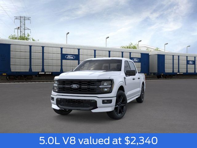 2025 Oxford White 2025 Ford F-150 STX STX 4D SuperCrew 4WD 5.0L V8 4WD. GVWR: 6,650 lbs Payload Package, Lobo Package (Dual Exhaust w/Black Tips, Lower Body Ground Effects, Painted Grille, Signature Lighting, Two-Speed Auto 4WD w/Neutral Towing Capability, and Wheels: 22" Aluminum), Mobile Office Package (400W Cab & Bed Outlets and Console Worksurface), 4WD, 4-Wheel Disc Brakes, 6 Speakers, ABS brakes, Air Conditioning, Alloy wheels, AM/FM radio: SiriusXM with 360L, Auto High-beam Headlights, Brake assist, Bumpers: body-color, Compass, Delay-off headlights, Driver door bin, Dual front impact airbags, Dual front side impact airbags, Electronic Stability Control, Emergency communication system: SYNC 4 911 Assist, Front anti-roll bar, Front Bucket Seats, Front Center Armrest, Front reading lights, Front wheel independent suspension, Fully automatic headlights, Heated door mirrors, Illuminated entry, Internet access capable: FordPass Connect 5G, Low tire pressure warning, Occupant sensing airbag, Outside temperature display, Overhead airbag, Overhead console, Panic alarm, Passenger door bin, Passenger vanity mirror, Power door mirrors, Power steering, Power windows, Radio data system, Radio: AM/FM Stereo w/SiriusXM 360L, Rear Parking Sensors, Rear step bumper, Rear window defroster, Remote keyless entry, Security system, Speed control, Split folding rear seat, Steering wheel mounted audio controls, SYNC 4 w/Enhanced Voice Recognition, Tachometer, Telescoping steering wheel, Tilt steering wheel, Traction control, Trip computer, Unique Sport Cloth 40/Console/40 Front-Seats, Variably intermittent wipers, Voltmeter, and Wheels: 18" Gloss Black. $1,000 - Exp. 12/31/2026 Retail Trade Assistance. Must trade in a vehicle to qualify $1,000 - Exp. 12/31/2026 Dealer Finance Assistance. Must finance through dealer lender to qualify.