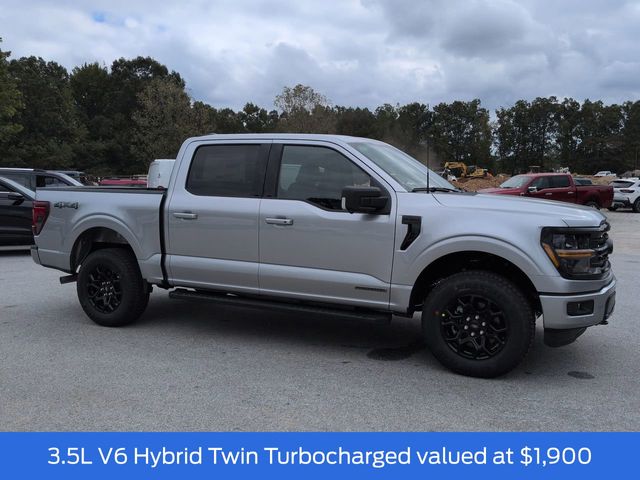 2025 Iconic Silver Metallic 2025 Ford F-150 XLT XLT 4D SuperCrew 4WD 3.5L PowerBoost Full-Hybrid V6 4D SuperCrew, 3.5L PowerBoost Full-Hybrid V6, 10-Speed Automatic, 4WD, 12" LCD Productivity Touchscreen, 360 Degree Camera, 400W Cab & Bed Outlets, 6" Angular Bright Anodized Step Bar, 6" Black Running Boards, Adaptive Cruise Control w/Stop & Go, Auto Emergency Braking, Auto LED Headlights, Auto-Dimming Rear-View Mirror, Backup Camera, Black Exterior Badging, Black Grille, Black Painted Grille w/Chrome Center Bar, Blind Spot Monitoring, BLIS w/ Cross Traffic Alert, Bluetooth w/ Audio Streaming, Body-Color Front & Rear Bumpers, Chrome Door & Tailgate Handles, Chrome Single-Tip Exhaust, Cloth 40/Console/40 Front Seats, Connected Navigation, Console Worksurface, Dark Interior Appliques, Driver State Detection, Dual-Zone Electronic Automatic Temperature Control, Electronic Locking w/3.73 Axle Ratio, Equipment Group 302A Mid, Evasive Steering Assist, Floor Shifter, Ford Co-Pilot360 Assist 2.0, Front Parking Sensors, Gray Box Side Decal, Heated Front Seats, Integrated Trailer Brake Controller, Intelligent Access w/Push Button Start, Lane Keeping System, Mobile Office Package, Parking Sensors, Partitioned Lockable Rear Storage, Post Collision Braking, Power Glass Heated Sideview Mirrors, Power Mirror Package, Power Package, Power Sliding Rear Window, Power-Sliding Rear Window, Pre Collision Assist w/ AEB, Remote Start System w/Remote Tailgate Release, Reverse Brake Assist, Reverse Sensing, Tow Package, Tow/Haul Package, Towing Technology, Trailer Package, Unique Sport Cloth 40/Console/40 Front-Seats, Wheels: 18" Gloss Black, Wireless Charging Pad, Wrapped Steering Wheel, XLT Black Appearance Package, XLT Package. Equipment Group 302A Mid (360 Degree Camera, 400W Cab & Bed Outlets, 6" Angular Bright Anodized Step Bar, Adaptive Cruise Control w/Stop & Go, Auto-Dimming Rear-View Mirror, Black Painted Grille w/Chrome Center Bar, Chrome Door & Tailgate Handles, Chrome Single-Tip Exhaust, Cloth 40/Console/40 Front Seats, Connected Navigation, Driver State Detection, Dual-Zone Electronic Automatic Temperature Control, Evasive Steering Assist, Ford Co-Pilot360 Assist 2.0, Front Parking Sensors, Heated Front Seats, Intelligent Access w/Push Button Start, Power Glass Heated Sideview Mirrors, Power-Sliding Rear Window, Remote Start System w/Remote Tailgate Release, Towing Technology, and Wrapped Steering Wheel), Mobile Office Package (Console Worksurface and Partitioned Lockable Rear Storage), Tow/Haul Package (Integrated Trailer Brake Controller), XLT Black Appearance Package (6" Black Running Boards, Black Exterior Badging, Black Grille, Body-Color Front & Rear Bumpers, Dark Interior Appliques, Floor Shifter, Gray Box Side Decal, Unique Sport Cloth 40/Console/40 Front-Seats, and Wheels: 18" Gloss Black), 4D SuperCrew, 3.5L PowerBoost Full-Hybrid V6, 10-Speed Automatic, 4WD, 12" LCD Productivity Touchscreen, Auto Emergency Braking, Auto LED Headlights, Backup Camera, Blind Spot Monitoring, BLIS w/ Cross Traffic Alert, Bluetooth w/ Audio Streaming, Electronic Locking w/3.73 Axle Ratio, Lane Keeping System, Parking Sensors, Post Collision Braking, Power Mirror Package, Power Package, Power Sliding Rear Window, Pre Collision Assist w/ AEB, Reverse Brake Assist, Reverse Sensing, Tow Package, Trailer Package, Wireless Charging Pad, XLT Package, 4-Wheel Disc Brakes, 6 Speakers, ABS brakes, Air Conditioning, Alloy wheels, AM/FM radio: SiriusXM with 360L, Auto High-beam Headlights, BlueCruise (Equipment + 1-Year Plan), Brake assist, Bumpers: chrome, Chrome wheels, Cloth 40/20/40 Front Seat, Compass, Delay-off headlights, Driver door bin, Driver vanity mirror, Dual front impact airbags, Dual front side impact airbags, Electronic Stability Control, Emergency communication system: SYNC 4 911 Assist,