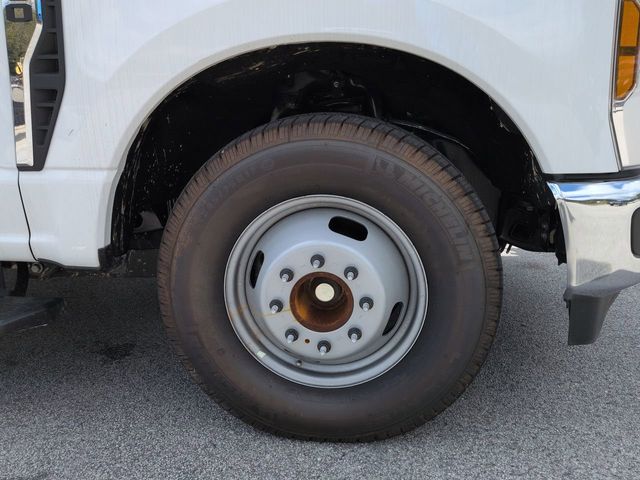 2025 Oxford White 2025 Ford F-350SD XL DRW XL 4D Crew Cab/Chassis RWD Power Stroke 6.7L V8 DI 32V OHV Turbodiesel 8" Color Touchscreen, Hill Start Assist, Power Sliding Rear Window, Preferred Equipment Package, Remote Start, Tow Package, Trailer Package, 4D Crew Cab/Chassis, Power Stroke 6.7L V8 DI 32V OHV Turbodiesel, 10-Speed Automatic, Bright Grille, Chrome Front Bumper, GVWR: 14,000 lb Payload Package, Halogen Fog Lamps, Limited Slip w/4.10 Axle Ratio, Order Code 640A, Privacy Glass w/Power Sliding Rear Glass, Rear Window Defroster, Remote Start, XL Chrome Package. GVWR: 14,000 lb Payload Package, Order Code 640A, XL Chrome Package (Bright Grille, Chrome Front Bumper, Halogen Fog Lamps, Privacy Glass w/Power Sliding Rear Glass, Rear Window Defroster, and Remote Start), 4D Crew Cab/Chassis, Power Stroke 6.7L V8 DI 32V OHV Turbodiesel, 10-Speed Automatic, Limited Slip w/4.10 Axle Ratio, 17" Argent Painted Steel Wheels, 4-Ton Hydraulic Jack, 4-Wheel Disc Brakes, 6 Speakers, ABS brakes, Air Conditioning, AM/FM radio, AM/FM Stereo w/MP3 Player, Brake assist, Compass, Delay-off headlights, Dual front impact airbags, Dual front side impact airbags, Dual rear wheels, Emergency communication system: SYNC 4 911 Assist, Engine Block Heater, Front anti-roll bar, Front Center Armrest w/Storage, Front License Plate Bracket, Front reading lights, Front wheel independent suspension, Fully automatic headlights, Heated door mirrors, Illuminated entry, Low tire pressure warning, Outside temperature display, Overhead airbag, Overhead console, Panic alarm, Passenger vanity mirror, Platform Running Boards, Power door mirrors, Power steering, Power windows, Rear anti-roll bar, Rear reading lights, Rear View Camera & Prep Kit, Remote keyless entry, Security system, Speed control, Split folding rear seat, Steering wheel mounted audio controls, SYNC 4 Communication & Entertainment System, Tachometer, Telescoping steering wheel, Tilt steering wheel, Traction control, Trip computer, Turn signal indicator mirrors, and Variably intermittent wipers.