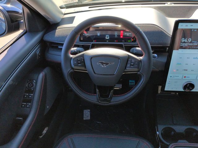 2025 Shadow Black 2025 Ford Mustang Mach-E Premium Premium 4D Sport Utility RWD Electric Motor 4D Sport Utility, Electric Motor, Single-Speed Automatic, RWD, 10.2" Digital Driver Cluster, 15.5" Color Touchscreen, 360-Degree Camera, Auto LED Headlights, Backup Camera, Brembo Branded Front Brakes, Cellular Connectivity for Audio/Video Streaming, Equipment Group 300A Standard Package, Ford Connectivity Package (One-Time Purchase), Memory Package, Mobile Power Cord (120V/240V), NACS Fast Charging Adapter, Navigation system: Connected Navigation, Panoramic Sunroof/Moonroof, Premium Audio Package, Premium Sound Package, Rain sensing wipers, Red Painted Front & Rear Brake Calipers, Sport Appearance Package, Sport Pedals, Unique Front Fascia, Wheels: 19" Monochromatic High Gloss Black-Painted, Wireless Charging Pad. Equipment Group 300A Standard Package, Ford Connectivity Package (One-Time Purchase) (Cellular Connectivity for Audio/Video Streaming), Sport Appearance Package (Brembo Branded Front Brakes, Red Painted Front & Rear Brake Calipers, Sport Pedals, Unique Front Fascia, and Wheels: 19" Monochromatic High Gloss Black-Painted), 4D Sport Utility, Electric Motor, Single-Speed Automatic, RWD, 10.2" Digital Driver Cluster, 15.5" Color Touchscreen, 360-Degree Camera, Auto LED Headlights, Backup Camera, Memory Package, Mobile Power Cord (120V/240V), NACS Fast Charging Adapter, Navigation system: Connected Navigation, Panoramic Sunroof/Moonroof, Premium Audio Package, Premium Sound Package, Rain sensing wipers, Wireless Charging Pad, 10 Speakers, 4-Wheel Disc Brakes, ABS brakes, Air Conditioning, Alloy wheels, AM/FM radio: SiriusXM with 360L, Apple CarPlay/Android Auto, Auto High-beam Headlights, Auto-dimming Rear-View mirror, Automatic temperature control, BlueCruise Equipped (1-Year Plan), Brake assist, Bumpers: body-color, Compass, Delay-off headlights, Driver door bin, Driver vanity mirror, Dual front impact airbags, Dual front side impact airbags, Electronic Stability Control, Emergency communication system: 911 Assist, Exterior Parking Camera Rear, Four wheel independent suspension, Front anti-roll bar, Front Bucket Seats, Front Center Armrest, Front dual zone A/C, Front reading lights, Fully automatic headlights, Garage door transmitter, Heated door mirrors, Heated front seats, Heated steering wheel, Heated/Ventilated Perforated ActiveX Bucket Seats, Illuminated entry, Knee airbag, Low tire pressure warning, Memory seat, Occupant sensing airbag, Outside temperature display, Overhead airbag, Overhead console, Panic alarm, Panoramic Fixed-Glass Roof, Passenger door bin, Passenger vanity mirror, Power door mirrors, Power driver seat, Power Liftgate, Power passenger seat, Power steering, Power windows, Radio data system, Radio: B&O Sound System by Bang & Olufsen, Rear anti-roll bar, Rear seat center armrest, Rear side impact airbag, Rear window defroster, Rear window wiper, Remote keyless entry, Security system, SiriusXM w/360L, Speed control, Speed-sensing steering, Speed-Sensitive Wipers, Split folding rear seat, Spoiler, Steering wheel mounted audio controls, SYNC 4A w/Enhanced Voice Recognition, Telescoping steering wheel, Tilt steering wheel, Traction control, Trip computer, Turn signal indicator mirrors, Ventilated front seats, and Wheels: 19" Bright Machined-Face Aluminum.