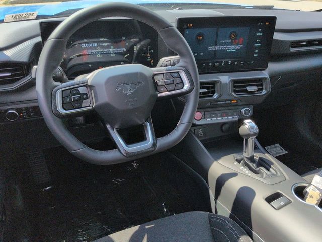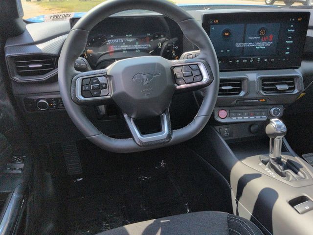 2025 Grabber Blue Metallic 2025 Ford Mustang EcoBoost EcoBoost 2D Coupe RWD EcoBoost 2.3L I4 GTDi DOHC Turbocharged VCT 2D Coupe, EcoBoost 2.3L I4 GTDi DOHC Turbocharged VCT, 10-Speed Automatic, RWD, 12.4" LCD Digital Driver Cluster, 13.2" LCD Centerstack Touchscreen, 4G WiFi Hotspot Telematics, ABS brakes, Alloy wheels, Backup Camera, Bluetooth w/ Audio Streaming, Compass, Electronic Stability Control, Equipment Group 100A Standard Package, Front dual zone A/C, Illuminated entry, Low tire pressure warning, Power Mirror Package, Power Package, Push Button Start, Remote keyless entry, Traction control. Equipment Group 100A Standard Package, 2D Coupe, EcoBoost 2.3L I4 GTDi DOHC Turbocharged VCT, 10-Speed Automatic, RWD, 12.4" LCD Digital Driver Cluster, 13.2" LCD Centerstack Touchscreen, 4G WiFi Hotspot Telematics, ABS brakes, Alloy wheels, Backup Camera, Bluetooth w/ Audio Streaming, Compass, Electronic Stability Control, Front dual zone A/C, Illuminated entry, Low tire pressure warning, Power Mirror Package, Power Package, Push Button Start, Remote keyless entry, Traction control, 4-Wheel Disc Brakes, 6 Speakers, Air Conditioning, AM/FM radio, AM/FM Stereo, Auto High-beam Headlights, Automatic temperature control, Brake assist, Bumpers: body-color, Cloth Bucket Seats, Delay-off headlights, Driver door bin, Driver vanity mirror, Dual front impact airbags, Dual front side impact airbags, Emergency communication system: 911 Assist, Exterior Parking Camera Rear, Four wheel independent suspension, Front anti-roll bar, Front Bucket Seats, Front Center Armrest, Front reading lights, Fully automatic headlights, Knee airbag, Leather Shift Knob, Occupant sensing airbag, Outside temperature display, Overhead airbag, Overhead console, Panic alarm, Passenger door bin, Passenger vanity mirror, Power door mirrors, Power steering, Power windows, Radio data system, Rain sensing wipers, Rear anti-roll bar, Rear Parking Sensors, Rear window defroster, Speed control, Speed-sensing steering, Speed-Sensitive Wipers, Split folding rear seat, Sport steering wheel, Steering wheel mounted audio controls, SYNC 4, Tachometer, Telescoping steering wheel, Tilt steering wheel, Trip computer, Voltmeter, and Wheels: 18" x 8" Machined-Face Aluminum.