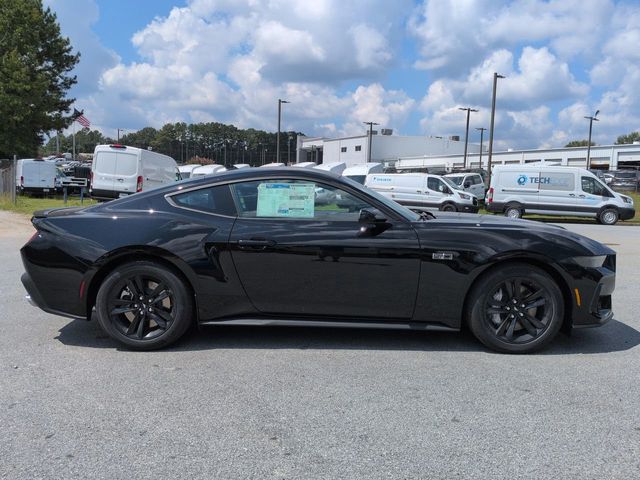 2025 Shadow Black 2025 Ford Mustang GT GT 2D Coupe RWD 5.0L V8 Ti-VCT 2D Coupe, 5.0L V8 Ti-VCT, 10-Speed Automatic, RWD, 12.4" LCD Digital Driver Cluster, 13.2" LCD Centerstack Touchscreen, 4G WiFi Hotspot Telematics, 9-Speaker Stereo System, ABS brakes, Alloy wheels, Ambient Lighting w/MyColor, Auto LED Headlights, Backup Camera, Cloth/Vinyl Heated Bucket Seats, Compass, Electronic Stability Control, Equipment Group 301A High Package, Front dual zone A/C, Illuminated entry, Low tire pressure warning, Parking Sensors, Push Button Start, Remote keyless entry, Reverse Sensing, SiriusXM w/360L & HD Radio, Traction control. Equipment Group 301A High Package (9-Speaker Stereo System, Ambient Lighting w/MyColor, Cloth/Vinyl Heated Bucket Seats, and SiriusXM w/360L & HD Radio), 2D Coupe, 5.0L V8 Ti-VCT, 10-Speed Automatic, RWD, 12.4" LCD Digital Driver Cluster, 13.2" LCD Centerstack Touchscreen, 4G WiFi Hotspot Telematics, ABS brakes, Alloy wheels, Auto LED Headlights, Backup Camera, Compass, Electronic Stability Control, Front dual zone A/C, Illuminated entry, Low tire pressure warning, Parking Sensors, Push Button Start, Remote keyless entry, Reverse Sensing, Traction control, 4-Wheel Disc Brakes, 6 Speakers, Air Conditioning, AM/FM radio, AM/FM Stereo, Auto High-beam Headlights, Automatic temperature control, Brake assist, Bumpers: body-color, Cloth Bucket Seats, Delay-off headlights, Driver door bin, Driver vanity mirror, Dual front impact airbags, Dual front side impact airbags, Emergency communication system: 911 Assist, Exterior Parking Camera Rear, Four wheel independent suspension, Front anti-roll bar, Front Bucket Seats, Front Center Armrest, Front reading lights, Fully automatic headlights, Knee airbag, Leather Shift Knob, Leather steering wheel, Occupant sensing airbag, Outside temperature display, Overhead airbag, Overhead console, Panic alarm, Passenger door bin, Passenger vanity mirror, Power door mirrors, Power steering, Power windows, Radio data system, Rain sensing wipers, Rear anti-roll bar, Rear Parking Sensors, Rear window defroster, Speed control, Speed-sensing steering, Speed-Sensitive Wipers, Split folding rear seat, Spoiler, Sport steering wheel, Steering wheel mounted audio controls, SYNC 4, Tachometer, Telescoping steering wheel, Tilt steering wheel, Trip computer, Variably intermittent wipers, Voltmeter, and Wheels: 18" x 8.5" Ebony Black Painted Aluminum.