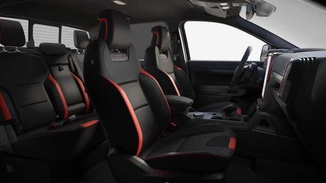 2025 Shadow Black 2025 Ford Ranger Raptor Raptor 4D Crew Cab 4WD 3.0L EcoBoost V6 4WD. 4WD, 10 Speakers, 4-Wheel Disc Brakes, 4.27 Axle Ratio, ABS brakes, Air Conditioning, Alloy wheels, AM/FM radio: SiriusXM, Auto High-beam Headlights, Auto-dimming Rear-View mirror, Automatic temperature control, Brake assist, Compass, Delay-off headlights, Driver door bin, Driver vanity mirror, Dual front impact airbags, Dual front side impact airbags, Electronic Stability Control, Emergency communication system: SYNC 4 911 Assist, Front anti-roll bar, Front Bucket Seats, Front Center Armrest, Front dual zone A/C, Front fog lights, Front reading lights, Front wheel independent suspension, Fully automatic headlights, Garage door transmitter, Heated door mirrors, Heated front seats, Heated steering wheel, Illuminated entry, Leather Shift Knob, Leather steering wheel, Leather-Trimmed Front Heated Bucket Seats, Low tire pressure warning, Memory seat, Navigation system: Connected Navigation, Occupant sensing airbag, Outside temperature display, Overhead airbag, Overhead console, Panic alarm, Passenger door bin, Passenger vanity mirror, Power door mirrors, Power driver seat, Power passenger seat, Power steering, Power windows, Radio: B&O Sound System by Bang & Olufsen, Rain sensing wipers, Rear reading lights, Rear seat center armrest, Rear step bumper, Rear window defroster, Remote keyless entry, Security system, SiriusXM Satellite Radio, Speed control, Speed-sensing steering, Steering wheel mounted audio controls, SYNC 4A, Telescoping steering wheel, Tilt steering wheel, Traction control, Trip computer, Turn signal indicator mirrors, Variably intermittent wipers, Voltmeter, and Wheels: 17" Gray-Painted Aluminum.