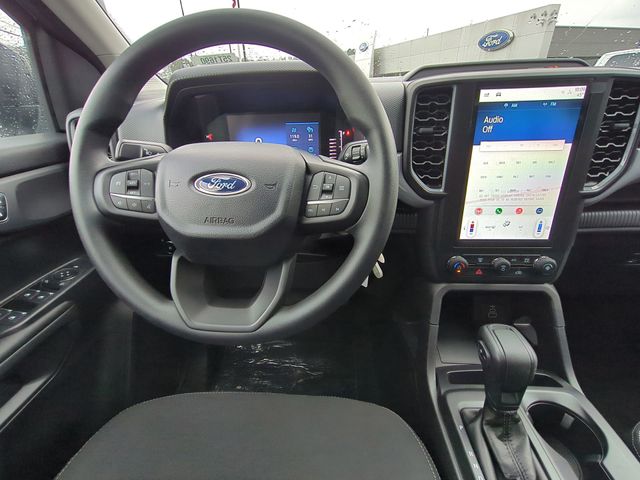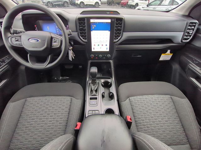 2025 Oxford White 2025 Ford Ranger XL XL 4D Crew Cab RWD EcoBoost 2.3L I4 GTDi DOHC Turbocharged VCT STX Appearance Package (Halogen Fog Lamps, LED Reflector Headlamps, and STX Fender Badge), Trailer Tow Package (Class IV Trailer Hitch Receiver), 4-Wheel Disc Brakes, 6 Speakers, ABS brakes, Air Conditioning, Alloy wheels, AM/FM radio, AM/FM Stereo, Auto High-beam Headlights, Black Running Boards, Brake assist, Bumpers: body-color, Carpet Floor Covering w/Carpet Floor Mats, Cloth Front Bucket Seats, Compass, Delay-off headlights, Driver door bin, Dual front impact airbags, Dual front side impact airbags, Electronic Stability Control, Emergency communication system: SYNC 4 911 Assist, Front anti-roll bar, Front Bucket Seats, Front Center Armrest, Front fog lights, Front License Plate Bracket, Front reading lights, Front wheel independent suspension, Fully automatic headlights, Illuminated entry, Internet access capable: FordPass Connect 4G, Low tire pressure warning, Occupant sensing airbag, Outside temperature display, Overhead airbag, Overhead console, Panic alarm, Passenger door bin, Power door mirrors, Power steering, Power windows, Rear reading lights, Rear seat center armrest, Rear step bumper, Remote keyless entry, Security system, Speed control, Speed-sensing steering, Steering wheel mounted audio controls, SYNC 4A, Telescoping steering wheel, Tilt steering wheel, Traction control, Trip computer, Variably intermittent wipers, Voltmeter, and Wheels: 17" Silver-Painted Aluminum.