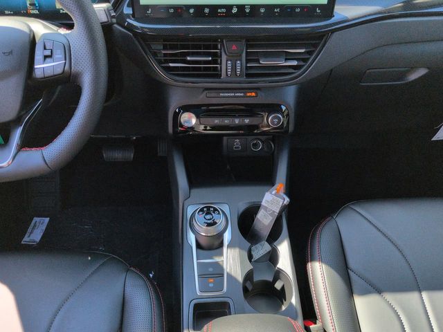 2026 Agate Black 2026 Ford Escape Hybrid ST-Line Elite ST-Line Elite 4D Sport Utility AWD 2.5L iVCT 4D Sport Utility, 2.5L iVCT, ABS brakes, Active Cruise Control, Alloy wheels, Compass, Electronic Stability Control, Front dual zone A/C, Heated door mirrors, Heated front seats, Illuminated entry, Low tire pressure warning, Navigation System, Power Liftgate, Remote keyless entry, Traction control. 4D Sport Utility, 2.5L iVCT, ABS brakes, Active Cruise Control, Alloy wheels, Compass, Electronic Stability Control, Front dual zone A/C, Heated door mirrors, Heated front seats, Illuminated entry, Low tire pressure warning, Navigation System, Power Liftgate, Remote keyless entry, Traction control, 2.91 Axle Ratio, 4-Wheel Disc Brakes, 6 Speakers, Air Conditioning, AM/FM radio: SiriusXM, AM/FM Stereo, Auto High-beam Headlights, Auto-dimming Rear-View mirror, Automatic temperature control, Brake assist, Bumpers: body-color, Delay-off headlights, Driver door bin, Driver vanity mirror, Dual front impact airbags, Dual front side impact airbags, Electronic Fuel Door Release, Emergency communication system: SYNC 4 911 Assist, Ford App, Four wheel independent suspension, Front anti-roll bar, Front Bucket Seats, Front Center Armrest, Front fog lights, Front reading lights, Fully automatic headlights, Heated steering wheel, Heated Vinyl/Cloth Front Sport Contour Bucket Seats, Knee airbag, Memory seat, Navigation system: Connected Navigation, Neutral Towing Capability, Occupant sensing airbag, Outside temperature display, Overhead airbag, Overhead console, Panic alarm, Passenger door bin, Passenger vanity mirror, Pedestrian Alert Sounder, Power door mirrors, Power driver seat, Power passenger seat, Power steering, Power windows, Radio data system, Rear anti-roll bar, Rear reading lights, Rear seat center armrest, Rear window defroster, Rear window wiper, Security system, Speed control, Speed-sensing steering, Speed-Sensitive Wipers, Split folding rear seat, Spoiler, Sport steering wheel, Steering wheel mounted audio controls, SYNC 4 w/Enhanced Voice Recognition, Tachometer, Telescoping steering wheel, Tilt steering wheel, Trip computer, Variably intermittent wipers, and Wheels: 19" Machined-Face Ebony-Painted Aluminum.