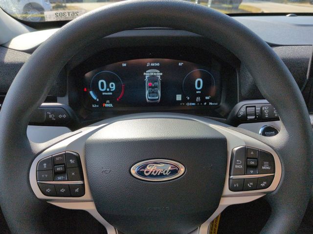 2026 Oxford White 2026 Ford Explorer Active Active 4D Sport Utility 4WD 2.3L EcoBoost I-4 4WD. Equipment Group 100A (AM/FM Stereo, Unique Cloth Captain's Chairs, and Wheels: 18" Sparkle Silver-Painted Aluminum), 4WD, 3rd row seats: bench, 4-Wheel Disc Brakes, 6 Speakers, ABS brakes, Air Conditioning, Alloy wheels, AM/FM radio: SiriusXM with 360L, Apple CarPlay/Android Auto, Auto High-beam Headlights, Automatic temperature control, Brake assist, Bumpers: body-color, Compass, Delay-off headlights, Driver door bin, Driver vanity mirror, Dual front impact airbags, Dual front side impact airbags, Electronic Stability Control, Emergency communication system: 911 Assist, Exterior Parking Camera Rear, Four wheel independent suspension, Front anti-roll bar, Front Bucket Seats, Front Center Armrest, Front dual zone A/C, Front reading lights, Fully automatic headlights, Heated ActiveX Seating Material Captain's Chairs, Heated door mirrors, Illuminated entry, Knee airbag, Low tire pressure warning, Navigation System, Occupant sensing airbag, Outside temperature display, Overhead airbag, Overhead console, Panic alarm, Passenger door bin, Passenger vanity mirror, Power driver seat, Power steering, Power windows, Rear air conditioning, Rear anti-roll bar, Rear reading lights, Rear window defroster, Rear window wiper, Remote keyless entry, Security system, Speed control, Speed-sensing steering, Speed-Sensitive Wipers, Split folding rear seat, Spoiler, Steering wheel mounted audio controls, Tachometer, Telescoping steering wheel, Tilt steering wheel, Traction control, Trip computer, and Variably intermittent wipers.