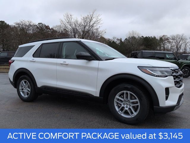 2026 Star White Metallic Tri-Coat 2026 Ford Explorer Active Active 4D Sport Utility RWD 2.3L EcoBoost I-4 Active Comfort Package (Front Fascia, Heated ActiveX Seating Material Captain's Chairs, Heated Steering Wheel, Remote Start System, and Second Row Hvac Controls), Equipment Group 200A Standard Package (8 USB Ports, Active Badging, Active Noise Cancellation, AM/FM Stereo, Black Lower Bodyside Cladding with Chrome Accent, Black Roof-Rack Side Rails, Manual-Folding Sideview Mirrors, Power Liftgate, Vinyl-Wrapped Steering Wheel, and Wheels: 18" Sparkle Silver-Painted Aluminum), Ford Connectivity Package (one-Time Purchase - 7 Years), 3rd row seats: bench, 4-Wheel Disc Brakes, 6 Speakers, ABS brakes, Air Conditioning, Alloy wheels, AM/FM radio: SiriusXM with 360L, Apple CarPlay/Android Auto, Auto High-beam Headlights, Automatic temperature control, Brake assist, Bumpers: body-color, Compass, Delay-off headlights, Driver door bin, Driver vanity mirror, Dual front impact airbags, Dual front side impact airbags, Electronic Stability Control, Emergency communication system: 911 Assist, Exterior Parking Camera Rear, Four wheel independent suspension, Front anti-roll bar, Front Bucket Seats, Front Center Armrest, Front dual zone A/C, Front reading lights, Fully automatic headlights, Heated door mirrors, Illuminated entry, Knee airbag, Low tire pressure warning, Navigation System, Occupant sensing airbag, Outside temperature display, Overhead airbag, Overhead console, Panic alarm, Passenger door bin, Passenger vanity mirror, Power driver seat, Power steering, Power windows, Rear air conditioning, Rear anti-roll bar, Rear reading lights, Rear window defroster, Rear window wiper, Remote keyless entry, Security system, Speed control, Speed-sensing steering, Speed-Sensitive Wipers, Split folding rear seat, Spoiler, Steering wheel mounted audio controls, Tachometer, Telescoping steering wheel, Tilt steering wheel, Traction control, Trip computer, Unique Cloth Captain's Chairs, and Variably intermittent wipers. $1,000 - Exp. 12/31/2026 Retail Trade Assistance. Must trade in a vehicle to qualify $1,000 - Exp. 12/31/2026 Dealer Finance Assistance. Must finance through dealer lender to qualify.