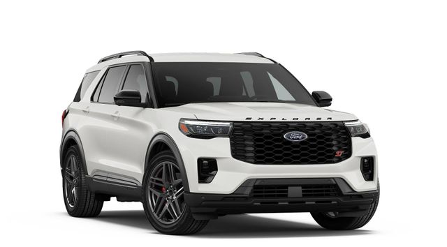2026 Star White Metallic Tri-Coat 2026 Ford Explorer ST ST 4D Sport Utility 4WD 3.0L EcoBoost V6 4WD. 4WD, 10 Speakers, 3rd row seats: bench, 4-Wheel Disc Brakes, ABS brakes, Air Conditioning, Alloy wheels, AM/FM radio: SiriusXM with 360L, Apple CarPlay/Android Auto, Auto High-beam Headlights, Auto-dimming door mirrors, Auto-dimming Rear-View mirror, Automatic temperature control, Brake assist, Bumpers: body-color, Compass, Delay-off headlights, Driver door bin, Driver vanity mirror, Dual front impact airbags, Dual front side impact airbags, Electronic Stability Control, Emergency communication system: 911 Assist, Exterior Parking Camera Rear, Four wheel independent suspension, Front anti-roll bar, Front Bucket Seats, Front Center Armrest, Front dual zone A/C, Front fog lights, Front reading lights, Fully automatic headlights, Garage door transmitter, Heated door mirrors, Heated front seats, Heated rear seats, Heated steering wheel, Heated/Ventilated Miko Suede Captain's Chairs, Illuminated entry, Knee airbag, Leather steering wheel, Low tire pressure warning, Memory seat, Navigation System, Occupant sensing airbag, Outside temperature display, Overhead airbag, Overhead console, Panic alarm, Passenger door bin, Passenger vanity mirror, Power door mirrors, Power driver seat, Power Liftgate, Power passenger seat, Power steering, Power windows, Radio: B&O Sound System by Bang and Olufsen, Rain sensing wipers, Rear air conditioning, Rear anti-roll bar, Rear reading lights, Rear window defroster, Rear window wiper, Remote keyless entry, SecuriCode Keyless Entry Keypad, Security system, Speed control, Speed-sensing steering, Speed-Sensitive Wipers, Split folding rear seat, Spoiler, Sport steering wheel, Steering wheel mounted audio controls, Tachometer, Telescoping steering wheel, Tilt steering wheel, Traction control, Trip computer, Turn signal indicator mirrors, Variably intermittent wipers, Ventilated front seats, and Wheels: 21" Magnetite-Painted Aluminum. Price includes: $1,000 - Exp. 12/31/2026 Retail Trade Assistance. Must trade in a vehicle to qualify $1,000 - Exp. 12/31/2026 Dealer Finance Assistance. Must finance through dealer lender to qualify.