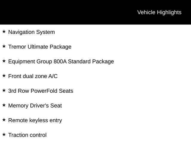 2026 Carbonized Gray Metallic 2026 Ford Explorer Tremor Tremor 4D Sport Utility 4WD 3.0L EcoBoost V6 4D Sport Utility, 3.0L EcoBoost V6, 10-Speed Automatic, 4WD, 12.3" HD Color Driver Cluster, 13.2" LCD Centerstack Touchscreen, 360-Degree Camera, 3rd Row PowerFold Seats, 3rd Row Seating, 5G WiFi Hotspot Telematics, ABS brakes, Active Cruise Control, Alloy wheels, Ambient Lighting, Android Auto, Apple Carplay, Auto LED Headlights, Backup Camera, Bluetooth w/ Audio Streaming, Compass, Electronic Stability Control, Equipment Group 800A Standard Package, Front dual zone A/C, Heated door mirrors, Heated front seats, Heated rear seats, Illuminated entry, LED Foglights, Low tire pressure warning, Memory Driver's Seat, Memory Package, Multi Zone Climate Control, Navigation System, Off Road Package, Panoramic Sunroof/Moonroof, Power Liftgate, Power Mirror Package, Power Package, Premium Sound Package, Push Button Start, Remote keyless entry, Remote Start, Skid Plate Package, Tow Package, Traction control, Trailer Package, Tremor Ultimate Package, WiFi Hotspot Capable. Equipment Group 800A Standard Package (Wheels: 18" High Gloss Black-Painted Aluminum), Tremor Ultimate Package (3rd Row PowerFold Seats, Ambient Lighting, Memory Driver's Seat, and Radio: B&O Sound System by Bang & Olufsen), 4D Sport Utility, 3.0L EcoBoost V6, 10-Speed Automatic, 4WD, 12.3" HD Color Driver Cluster, 13.2" LCD Centerstack Touchscreen, 360-Degree Camera, 3rd Row Seating, 5G WiFi Hotspot Telematics, ABS brakes, Active Cruise Control, Alloy wheels, Android Auto, Apple Carplay, Auto LED Headlights, Backup Camera, Bluetooth w/ Audio Streaming, Compass, Electronic Stability Control, Front dual zone A/C, Heated door mirrors, Heated front seats, Heated rear seats, Illuminated entry, LED Foglights, Low tire pressure warning, Memory Package, Multi Zone Climate Control, Navigation System, Off Road Package, Panoramic Sunroof/Moonroof, Power Liftgate, Power Mirror Package, Power Package, Premium Sound Package, Push Button Start, Remote keyless entry, Remote Start, Skid Plate Package, Tow Package, Traction control, Trailer Package, WiFi Hotspot Capable, 10 Speakers, 3rd row seats: bench, 4-Wheel Disc Brakes, Air Conditioning, AM/FM radio: SiriusXM with 360L, Apple CarPlay/Android Auto, Auto High-beam Headlights, Automatic temperature control, Brake assist, Bumpers: body-color, Delay-off headlights, Driver door bin, Driver vanity mirror, Dual front impact airbags, Dual front side impact airbags, Emergency communication system: 911 Assist, Exterior Parking Camera Rear, Four wheel independent suspension, Front anti-roll bar, Front Bucket Seats, Front Center Armrest, Front fog lights, Front reading lights, Fully automatic headlights, Heated steering wheel, Knee airbag, Leather steering wheel, Occupant sensing airbag, Outside temperature display, Overhead airbag, Overhead console, Panic alarm, Passenger door bin, Passenger vanity mirror, Power door mirrors, Power driver seat, Power passenger seat, Power steering, Power windows, Rear air conditioning, Rear anti-roll bar, Rear reading lights, Rear window defroster, Rear window wiper, Security system, Speed control, Speed-sensing steering, Speed-Sensitive Wipers, Split folding rear seat, Spoiler, Sport steering wheel, Steering wheel mounted audio controls, Tachometer, Telescoping steering wheel, Tilt steering wheel, Trip computer, and Ventilated front seats. Price includes: $1,000 - Exp. 12/31/2026 Retail Trade Assistance. Must trade in a vehicle to qualify $1,000 - Exp. 12/31/2026 Dealer Finance Assistance. Must finance through dealer lender to qualify.