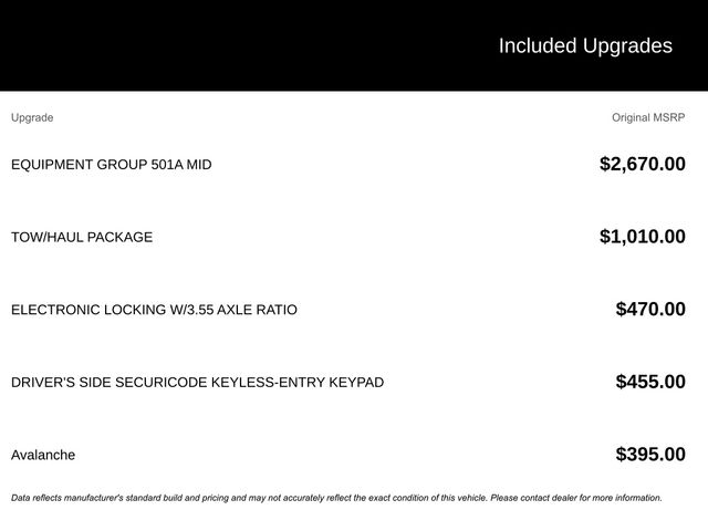 Prices do not include additional fees and costs of closing, including government fees and taxes, any finance charges, any dealer documentation fees, any emissions testing fees or other fees. All prices, specifications and availability subject to change without notice. Contact dealer for most current information. Prices are valid thru the close of business, today only.