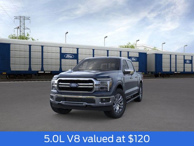2026 Antimatter Blue Metallic 2026 Ford F-150 Lariat Lariat 4D SuperCrew 4WD 5.0L V8 4WD. Bed Utility Package (4 Pickup Box Tie-Down Plates, Bed Storage Boxes, LED Box Lighting, and Tailgate Step with Work Surface), Ford Connectivity Package (1-Year Included), FX4 Off-Road Package (4x4 FX4 Off-Road Bodyside Decal, Hill Descent Control, Monotube Rear Shocks, Off-Road Tuned Front Shock Absorbers, and Tray Style Floor Liner Without Carpet Mats), Internet access capable: 5G Modem - Ford Connectivity Package, Mobile Office Package (Console Worksurface, Partitioned Lockable Rear Storage, and Wireless Charging), Tow/Haul Package (Integrated Trailer Brake Controller), 4WD, 4-Wheel Disc Brakes, 8 Speakers, ABS brakes, Air Conditioning, Alloy wheels, AM/FM radio: SiriusXM with 360L, Auto High-beam Headlights, Auto-dimming door mirrors, Auto-dimming Rear-View mirror, Automatic temperature control, Brake assist, Bumpers: chrome, Chrome wheels, Compass, Delay-off headlights, Driver door bin, Driver vanity mirror, Dual front impact airbags, Dual front side impact airbags, Electronic Stability Control, Emergency communication system: SYNC 4 911 Assist, Front anti-roll bar, Front Bucket Seats, Front Center Armrest, Front dual zone A/C, Front fog lights, Front License Plate Bracket, Front reading lights, Front wheel independent suspension, Fully automatic headlights, Garage door transmitter, Heated door mirrors, Heated front seats, Heated steering wheel, Illuminated entry, Low tire pressure warning, Memory seat, Navigation system: Connected Navigation, Occupant sensing airbag, Outside temperature display, Overhead airbag, Overhead console, Panic alarm, Passenger door bin, Passenger vanity mirror, Power door mirrors, Power driver seat, Power passenger seat, Power steering, Power windows, Radio data system, Radio: B&O Sound System by Bang and Olufsen, Rain sensing wipers, Rear reading lights, Rear seat center armrest, Rear step bumper, Rear window defroster, Remote keyless entry, Security system, Speed control, Split folding rear seat, Steering wheel mounted audio controls, SYNC 4 with Enhanced Voice Recognition, Tachometer, Telescoping steering wheel, Tilt steering wheel, Traction control, Trip computer, Turn signal indicator mirrors, Variably intermittent wipers, Ventilated front seats, Wheel Well Liner, and Wheels: 18" Chrome-Like PVD. Price includes: $1,000 - Exp. 12/31/2026 Retail Trade Assistance. Must trade in a vehicle to qualify $1,000 - Exp. 12/31/2026 Dealer Finance Assistance. Must finance through dealer lender to qualify.