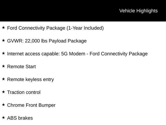 2026 Oxford White 2026 Ford F-600SD XL XL 2D Standard Cab 4WD Power Stroke 6.7L V8 DI 32V OHV Turbodiesel 2D Standard Cab, Power Stroke 6.7L V8 DI 32V OHV Turbodiesel, 10-Speed Automatic, 4WD, 350 Amp Dual Alternators, 5G WiFi Hotspot Telematics, 8" Color Touchscreen, ABS brakes, Bright Grille, Chrome Front Bumper, Compass, Dual 68 AH/65 AGM Battery, Dual Diesel Fuel Tanks, Electronic Stability Control, Ford Connectivity Package (1-Year Included), GVWR: 22,000 lbs Payload Package, Halogen Fog Lamps, Heated door mirrors, Illuminated entry, Internet access capable: 5G Modem - Ford Connectivity Package, Low tire pressure warning, Order Code 680A, Preferred Equipment Package, Remote keyless entry, Remote Start, Remote Start, Tow Package, Traction control, Trailer Package, XL Chrome Package. Ford Connectivity Package (1-Year Included), GVWR: 22,000 lbs Payload Package, Internet access capable: 5G Modem - Ford Connectivity Package, Order Code 680A (Wheels: 19.5" x 6.75" Argent Painted Steel), XL Chrome Package (Bright Grille, Chrome Front Bumper, Halogen Fog Lamps, and Remote Start), 2D Standard Cab, Power Stroke 6.7L V8 DI 32V OHV Turbodiesel, 10-Speed Automatic, 4WD, 350 Amp Dual Alternators, 5G WiFi Hotspot Telematics, 8" Color Touchscreen, ABS brakes, Compass, Dual 68 AH/65 AGM Battery, Dual Diesel Fuel Tanks, Electronic Stability Control, Heated door mirrors, Illuminated entry, Low tire pressure warning, Preferred Equipment Package, Remote keyless entry, Remote Start, Tow Package, Traction control, Trailer Package, 4 Speakers, 4-Wheel Disc Brakes, Air Conditioning, AM/FM radio, Brake assist, Delay-off headlights, Dual front impact airbags, Dual front side impact airbags, Dual rear wheels, Emergency communication system: SYNC 4 911 Assist, Front anti-roll bar, Front Center Armrest w/Storage, Front reading lights, Fully automatic headlights, Outside temperature display, Overhead airbag, Overhead console, Panic alarm, Passenger cancellable airbag, Passenger vanity mirror, Power door mirrors, Power steering, Power windows, Rear anti-roll bar, Security system, Speed control, Steering wheel mounted audio controls, Tachometer, Telescoping steering wheel, Tilt steering wheel, Trip computer, Turn signal indicator mirrors, and Variably intermittent wipers. Price includes: $1,000 - Exp. 12/31/2026 Retail Trade Assistance. Must trade in a vehicle to qualify $1,000 - Exp. 12/31/2026 Dealer Finance Assistance. Must finance through dealer lender to qualify.