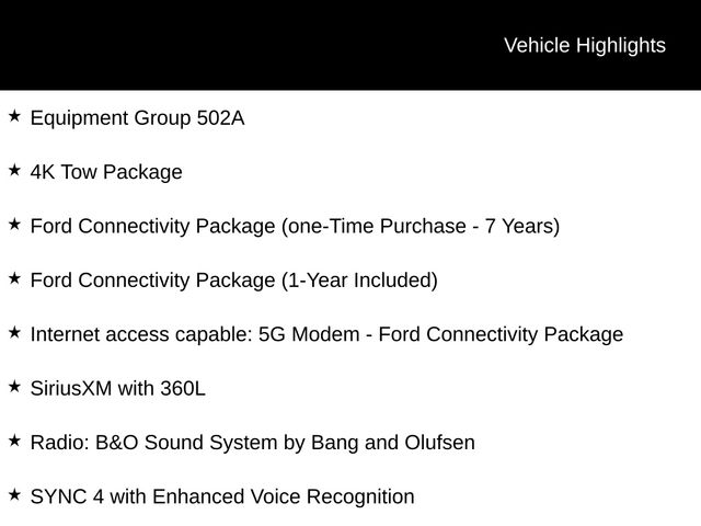- Internet access capable: 5G Modem - Ford Connectivity Package