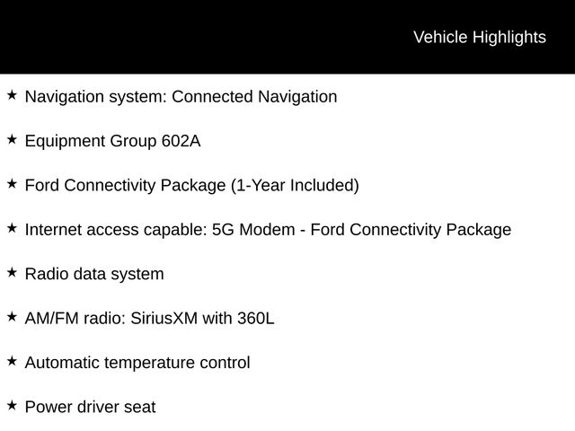 - Internet access capable: 5G Modem - Ford Connectivity Package
