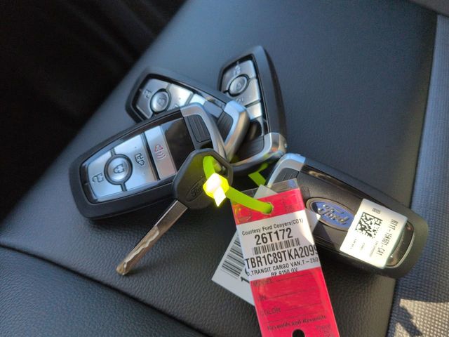 2026 Oxford White 2026 Ford Transit-250 Base 3D Cargo Van RWD 3.5L V6 Flex Fuel Ford Connectivity Package (1-Year Included), Heavy-Duty Trailer Tow Package (Frame Mounted Hitch Receiver and Tow/Haul Mode with Trailering Wiring Provisions), Order Code 101A (3.73 Axle Ratio, AM/FM Stereo, Dark Palazzo Gray Vinyl Bucket Seats, SYNC 4, Vinyl Front Bucket Seats, and Wheels: 16" Silver Steel with Black Hubcap), 2 Additional Keys (4 Total), 4 Speakers, 4-Wheel Disc Brakes, ABS brakes, Air Conditioning, AM/FM radio, Apple CarPlay/Android Auto, Auto High-beam Headlights, Brake assist, Cloth Front Bucket Seats, Delay-off headlights, Driver door bin, Driver's Seat Mounted Armrest, Dual front impact airbags, Dual front side impact airbags, Electronic Stability Control, Emergency communication system: 911 Assist, Exterior Parking Camera Rear, Front and Rear Vinyl Floor Covering, Front anti-roll bar, Front Bucket Seats, Front License Plate Bracket, Front reading lights, Front wheel independent suspension, Fully automatic headlights, Illuminated entry, Low tire pressure warning, Navigation system: Connected Navigation, Occupant sensing airbag, Overhead airbag, Panic alarm, Passenger cancellable airbag, Passenger door bin, Power door mirrors, Power steering, Power windows, Rain sensing wipers, Remote keyless entry, Speed control, Steering wheel mounted audio controls, Tachometer, Telescoping steering wheel, Tilt steering wheel, Traction control, and Variably intermittent wipers. Price includes: $1,000 - Exp. 12/31/2026 Retail Trade Assistance. Must trade in a vehicle to qualify $1,000 - Exp. 12/31/2026 Dealer Finance Assistance. Must finance through dealer lender to qualify.