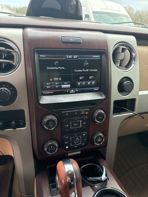 This 2013 Ford F-150 King Ranch in Kodiak Brown Metallic features: 4D SuperCrew, 5.0L V8 FFV, 6-Speed Automatic Electronic, 4WD, **LOCAL TRADE**, 10 Speakers, 18" 7-Spoke Aluminum w/King Ranch Logo Wheels, 4-Wheel Disc Brakes, ABS brakes, Adjustable pedals, Alloy wheels, AM/FM radio: SiriusXM, Auto tilt-away steering wheel, Auto-dimming door mirrors, Auto-dimming Rear-View mirror, Automatic temperature control, Backup Camera, Bi Xenon Headlamp Package, Cold Weather Package, Compass, Delay-off headlights, DVD-Audio, Electronic Stability Control, Equipment Group 600A, Exterior Parking Camera Rear, Front Center Armrest, Front dual zone A/C, Front fog lights, Front wheel independent suspension, Fully automatic headlights, Garage door transmitter, GVWR: 7,350 lbs Payload Package, Heated door mirrors, Heated front seats, Heated rear seats, High-Intensity Discharge Headlamps, Hill Start Assist, Illuminated entry, King Ranch Chaparral Leather Bucket Seats, King Ranch Luxury Package, King Ranch Package, Leather Seats, Leather steering wheel, Low tire pressure warning, Memory Package, Memory seat, Multimedia Package, Navigation System, Outside temperature display, Overhead console, Overhead Console w/Single Storage Bin, Panic alarm, Parking Sensors, Pedal memory, Power door mirrors, Power driver seat, Power Mirror Package, Power Moonroof, Power Package, Power passenger seat, Power Running Boards, Power Sliding Rear Window, Power steering, Power windows, Premium Audio Package, Premium audio system: Sony, Premium Sound Package, Radio data system, Radio: Sony Single-CD w/HD, Rear Parking Sensors, Rear seat center armrest, Rear step bumper, Remote keyless entry, Remote Start, Reverse Brake Assist, Reverse Sensing, Security system, Speed-sensing steering, Split folding rear seat, Steering wheel memory, Steering wheel mounted audio controls, Sunroof/Moonroof, SYNC w/MyFord Touch, Tailgate Step, Telescoping steering wheel, Tilt steering wheel, Traction control, Trailer Brake Controller, Trip computer, Turn signal indicator mirrors, Variably intermittent wipers, Ventilated front seats.