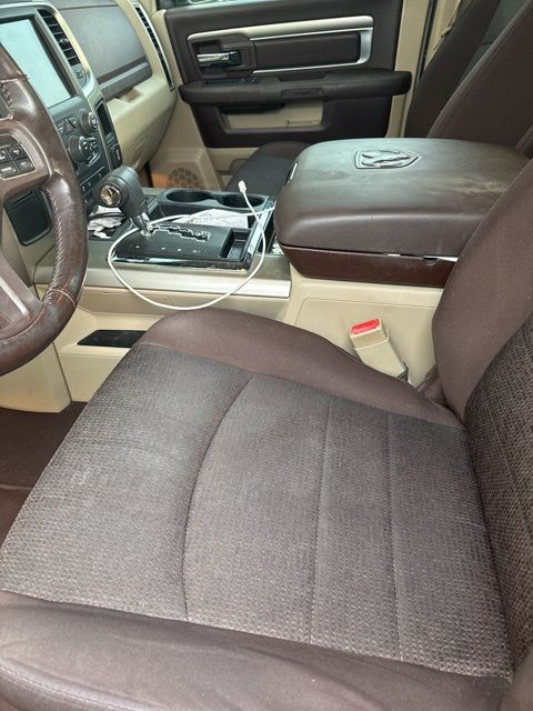 This 2013 Ram 1500 Big Horn in Black Gold Pearlcoat features: 4D Quad Cab, HEMI 5.7L V8 Multi Displacement VVT, 6-Speed Automatic, RWD, **LOCAL TRADE**, 20" x 8" Chrome Clad Aluminum Wheels, 4-Wheel Disc Brakes, 40/20/40 Split Bench Seat, 6 Month Trial (Registration Required), 6 Speakers, 8.4" Touch Screen Display, ABS brakes, Active Grille Shutters, Air Conditioning, AM/FM radio: SiriusXM, Ash Tray Lamp, Auto-Dimming Exterior Mirrors, Backup Camera, Big Horn Regional Package, Bighorn Badge, Bluetooth w/ Audio Streaming, Bright/Bright Billets Grille, Class IV Receiver Hitch, Cold Weather Package, Comfort Group, Comfort Package, Compass, Delay-off headlights, Electroluminescent Instrument Cluster, Electronic Stability Control, Exterior Mirrors Courtesy Lamps, Exterior Mirrors w/Heating Element, Exterior Mirrors w/Supplemental Signals, Fog Lamps, Front Armrest w/Three Cupholders, Front Center Armrest w/Storage, Front Center Seat Cushion Storage, Front wheel independent suspension, Fully automatic headlights, Glove Box Lamp, Heated door mirrors, Heated Front Seats, Heated Steering Wheel, Illuminated entry, Integrated Voice Command w/Bluetooth, Leather Wrapped Steering Wheel, Low tire pressure warning, Luxury Group, Luxury Package, Media Hub (SD, USB, AUX), Nav-Ready See Dealer for Details, Outside temperature display, Overhead Console w/UGDO, Panic alarm, ParkSense Rear Park Assist System, ParkView Rear Back-Up Camera, Power door mirrors, Power Folding Mirrors, Power Heated Fold-Away Mirrors, Power Mirror Package, Power Package, Power Sliding Rear Window, Power steering, Power windows, Preferred Equipment Package, Premium Cloth 40/20/40 Bench Seat, Quick Order Package 25Z Big Horn (DISC), Radio data system, Radio: Uconnect 8.4A AM/FM/BT/Access, Rear Dome w/On/Off Switch Lamp, Rear step bumper, Rear View Auto Dim Mirror w/Display, Rear-View Auto-Dimming Mirror w/Microphone, Remote keyless entry, Speed control, Steering Wheel Mounted Audio Controls, Sun Visors w/Illuminated Vanity Mirrors, Suspension Package, Tilt steering wheel, Tip Start, Tow Package, Traction control, Trailer Package, Trip computer, Uconnect Access Advantage, Underhood Lamp, Universal Garage Door Opener, Variably intermittent wipers.