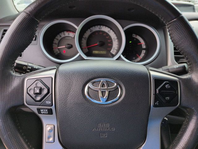 The TRD Sport package adds a host of premium features, including a hood scoop, color-keyed exterior accents, sport-tuned suspension with TRD Bilstein race shocks, 17-inch alloy wheels, and a power-sliding rear window. Inside, you'll find a leather-wrapped steering wheel and shift knob, an Entune Premium Audio system with navigation, and a tailgate-integrated backup camera for added convenience and safety.