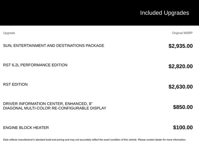 Prices do not include additional fees and costs of closing, including government fees and taxes, any finance charges, any dealer documentation fees, any emissions testing fees or other fees. All prices, specifications and availability subject to change without notice. Contact dealer for most current information. Prices are valid thru the close of business, today only.