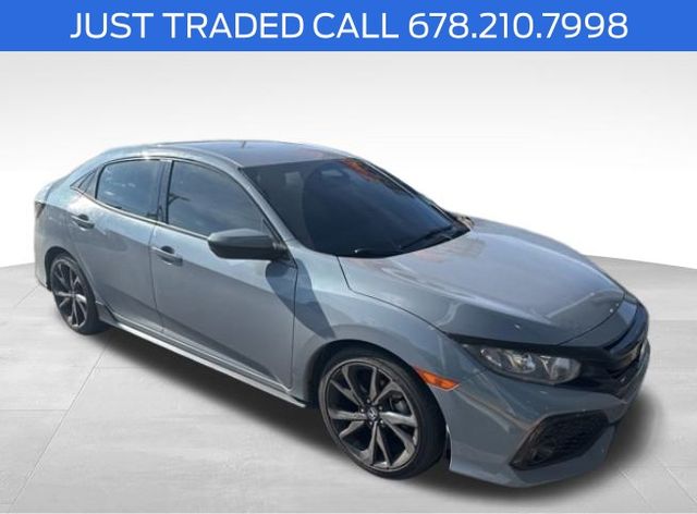 This 2018 Honda Civic Sport in Sonic Gray Pearl features: 4D Hatchback, 1.5L I4 DOHC 16V, CVT, FWD, 4 Speakers, 4-Wheel Disc Brakes, ABS brakes, Automatic temperature control, Backup Camera, Brake assist, Compass, Delay-off headlights, Electronic Stability Control, Exterior Parking Camera Rear, Four wheel independent suspension, Front Bucket Seats, Front Center Armrest, Front fog lights, Fully automatic headlights, Illuminated entry, Leather Shift Knob, Low tire pressure warning, Outside temperature display, Panic alarm, Power door mirrors, Power steering, Power windows, Radio data system, Radio: 160-Watt AM/FM Audio System, Rear seat center armrest, Reclining Front Bucket Seats, Remote keyless entry, Security system, Speed control, Speed-sensing steering, Split folding rear seat, Spoiler, Sport Package, Steering wheel mounted audio controls, Telescoping steering wheel, Tilt steering wheel, Traction control, Trip computer.