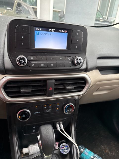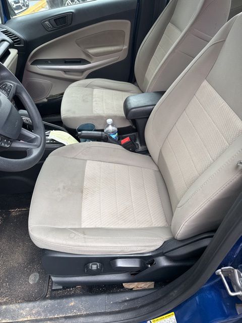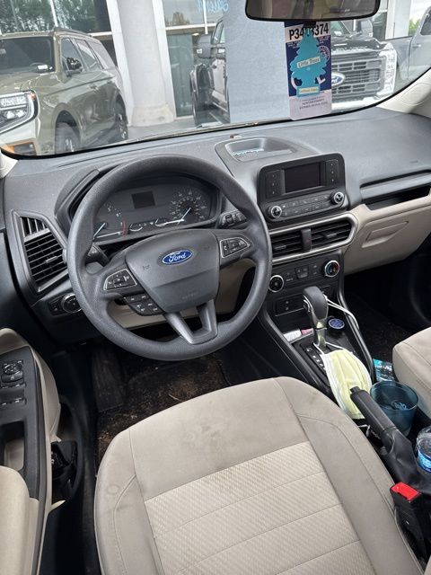 This 2019 Ford EcoSport S in Lightning Blue Metallic features: 4D Sport Utility, EcoBoost 1.0L I3 GTDi DOHC Turbocharged VCT, 6-Speed Automatic, FWD, **LOCAL TRADE**, **NOT ALL PRE-OWNED CARS/TRUCKS COME WITH 2 KEYS**, 4-Wheel Disc Brakes, 6 Speakers, ABS brakes, Air Conditioning, Backup Camera, Brake assist, Bumpers: body-color, Cloth Front Bucket Seats, Compass, Delay-off headlights, Electronic Stability Control, Equipment Group 100A, Exterior Parking Camera Rear, Front Bucket Seats, Front Center Armrest, Front wheel independent suspension, Fully automatic headlights, Hill Start Assist, Illuminated entry, Low tire pressure warning, Outside temperature display, Overhead console, Panic alarm, Power door mirrors, Power Mirror Package, Power Package, Power steering, Power windows, Radio data system, Radio: AM/FM Stereo w/MP3 Capable, Rear seat center armrest, Rear window defroster, Rear window wiper, Remote keyless entry, Speed control, Speed-sensing steering, Split folding rear seat, Steering wheel mounted audio controls, Telescoping steering wheel, Tilt steering wheel, Tire Inflator & Sealant Kit, Traction control, Trip computer, Variably intermittent wipers, Wheels: 16" Low-Gloss Magnetic-Painted.