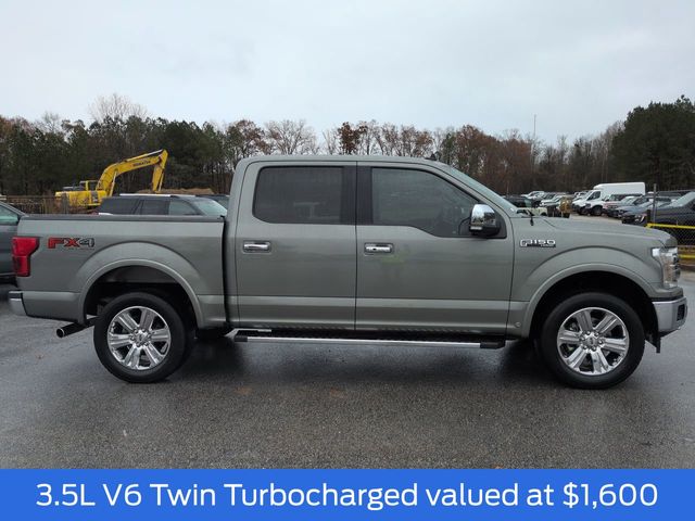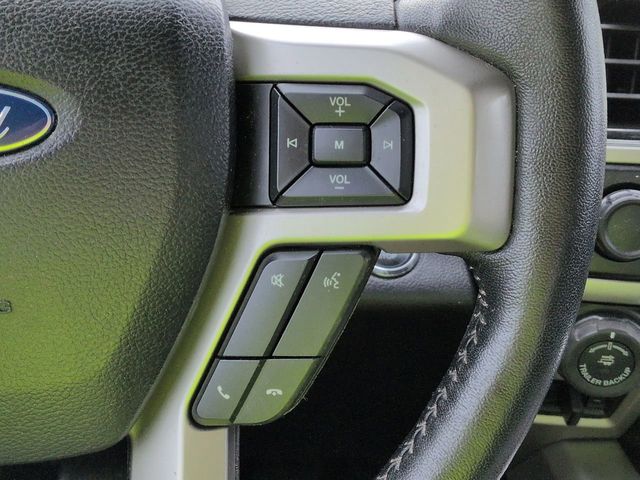 This 2019 Ford F-150 Lariat in Silver Spruce features: 4D SuperCrew, 3.5L V6 EcoBoost, 10-Speed Automatic, 4WD, **LOCAL TRADE**, 110V/400W Outlet, 2nd Row Heated Seats, 360-Degree Camera, 4-Wheel Disc Brakes, 4G WiFi Hotspot Telematics, 4x4 FX4 Off-Road Bodyside Decal, 7 Speakers, 8" Color Touchscreen, ABS brakes, Active Park Assist, Active Park Assist, Adaptive Cruise Control, Adaptive Cruise Control, AM/FM radio: SiriusXM, AppLink/Apple CarPlay and Android Auto, Auto Emergency Braking, Auto High-beam Headlights, Auto-dimming door mirrors, Auto-dimming Rear-View mirror, Automatic temperature control, Backup Camera, Blind Spot Monitoring, BLIS Blind Spot Information System, BLIS w/ Cross Traffic Alert, Bluetooth w/ Audio Streaming, Brake assist, Chrome 2-Bar Grille w/4 Minor Bars, Chrome Angular Step Bars, Chrome Door & Tailgate Handles w/Body-Color Bezel, Chrome Skull Caps on Exterior Mirrors, Class IV Trailer Hitch Receiver, Cold Weather Package, Compass, Delay-off headlights, Electronic Locking w/3.55 Axle Ratio, Electronic Stability Control, Emergency communication system: SYNC 3 911 Assist, Engine Oil Cooler, Equipment Group 502A Luxury, Extended Range 36 Gallon Fuel Tank, Exterior Parking Camera Rear, Front Center Armrest w/Storage, Front dual zone A/C, Front fog lights, Front wheel independent suspension, Fully automatic headlights, FX4 Off-Road Package, GVWR: 7,050 lbs Payload Package, Heated door mirrors, Heated front seats, Heated Steering Wheel, Heavy Duty Trailer Package, Hill Descent Control, Hill Descent Control, Illuminated entry, Integrated Trailer Brake Controller, Lane Keeping System, Lane-Keeping System, Lariat Chrome Appearance Package, Lariat Package, Leather Seats, Leather-Trimmed Bucket Seats, LED Sideview Mirror Spotlights, Low tire pressure warning, Luxury Package, Max Trailer Tow Package, Memory Package, Memory seat, Navigation System, Off Road Package, Off-Road Tuned Front Shock Absorbers, Outside temperature display, Overhead console, Panic alarm, Panoramic Sunroof/Moonroof, Pedal memory, Power door mirrors, Power driver seat, Power Glass Sideview Mirr w/Chrome Skull Caps, Power Mirror Package, Power Package, Power passenger seat, Power Sliding Rear Window, Power steering, Power Tilt/Telescoping Steering Column w/Memory, Power windows, Pre Collision Assist w/ AEB, Premium Audio Package, Premium Sound Package, Pro Trailer Backup Assist, Pro Trailer Backup Assist, Pro Trailer Hitch Assist, Quad Beam LED Headlamps & LED Taillamps/Fog Lamps, Radio data system, Radio: B&O Sound System by Bang & Olufsen, Rain-Sensing Wipers, Rear seat center armrest, Rear step bumper, Remote keyless entry, Remote Start System w/Remote Tailgate Release, Reverse Brake Assist, Reverse Sensing, Reverse Sensing System, Security system, Single-Tip Chrome Exhaust, SiriusXM Radio, Skid Plate Package, Speed-sensing steering, Split folding rear seat, Steering wheel mounted audio controls, Tailgate Step w/Tailgate Lift Assist, Technology Package, Telescoping steering wheel, Tilt steering wheel, Traction control, Trailer Side Blind Zone Alert, Tray Style Floor Liner, Trip computer, Turn signal indicator mirrors, Twin Panel Moonroof, Universal Garage Door Opener, Upgraded Front Stabilizer Bar, Variably intermittent wipers, Ventilated front seats, Voice-Activated Touchscreen Navigation, Wheels: 20" Chrome-Like PVD, Windshield Wiper De-Icer.