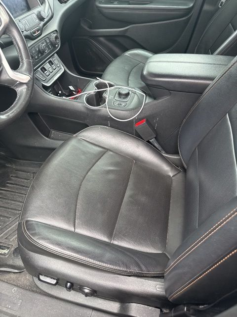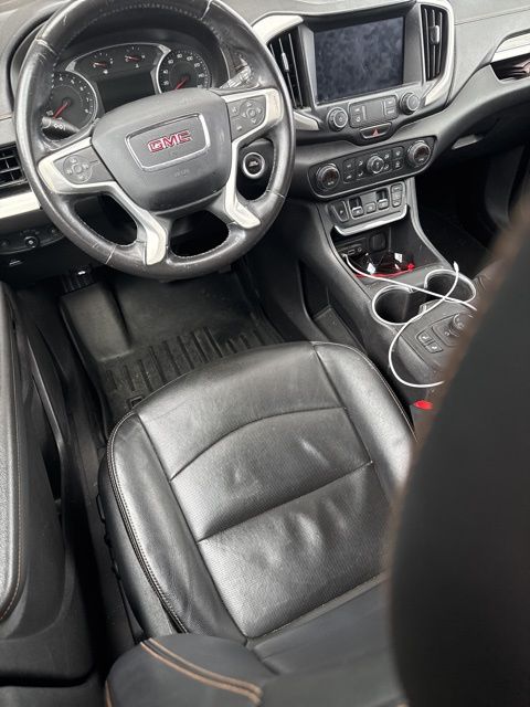 This 2019 GMC Terrain SLT in Ebony Twilight Metallic features: 4D Sport Utility, 2.0L Turbocharged, 9-Speed Automatic, FWD, **LOCAL TRADE**, 2 USB Data Ports, 2 USB Data Ports w/SD Card Reader, 4-Way Manual Front Passenger Seat, 4-Wheel Antilock 4-Wheel Disc Brakes, 4-Wheel Disc Brakes, 6-Speaker Audio System Feature, 8-Way Power Driver Seat Adjuster, ABS brakes, AM/FM radio: SiriusXM, Apple CarPlay/Android Auto, Auto-dimming door mirrors, Auto-dimming Rear-View mirror, Automatic temperature control, Backup Camera, Bluetooth For Phone, Brake assist, Compass, Delay-off headlights, Driver & Front Passenger Heated Seats, Dual Exhaust w/Bright Tips, Electronic Stability Control, Emergency communication system, Exterior Parking Camera Rear, Four wheel independent suspension, Front Center Armrest, Front dual zone A/C, Front fog lights, Fully automatic headlights, Heated door mirrors, Heated front seats, High-Intensity Discharge Headlights, Illuminated entry, Leather Seats, Low tire pressure warning, Outside temperature display, Overhead console, Panic alarm, Perforated Leather-Appointed Seat Trim, Power door mirrors, Power Driver Lumbar Control, Power Mirror Package, Power Package, Power windows, Preferred Equipment Group 4SA, Preferred Equipment Package, Radio data system, Radio: GMC Infotainment Audio System w/8" Display, Rear seat center armrest, Rear window wiper, Remote keyless entry, Roof rack: rails only, Security system, SiriusXM Radio, SLT Package, Speed control, Speed-sensing steering, Split folding rear seat, Spoiler, Steering wheel mounted audio controls, Telescoping steering wheel, Tilt steering wheel, Traction control, Trip computer, Turn signal indicator mirrors, Wheels: 19" x 7.5" Machined Aluminum w/Gray Accents.
