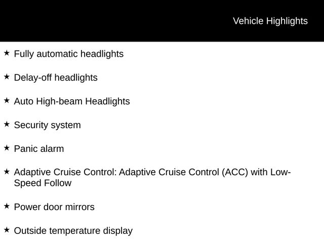 - Adaptive Cruise Control: Adaptive Cruise Control (ACC) with Low-Speed Follow