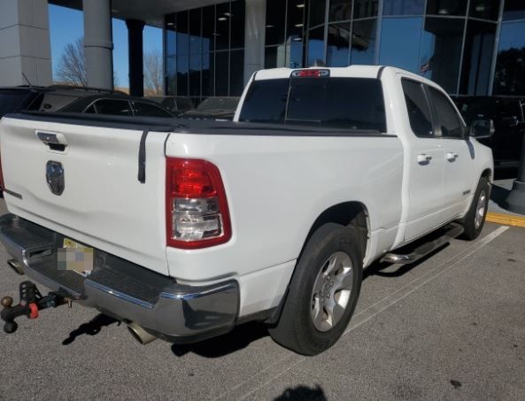 This 2020 Ram 1500 Big Horn/Lone Star in Bright White Clearcoat features: 4D Quad Cab, HEMI 5.7L V8 Multi Displacement VVT, 8-Speed Automatic, RWD, **LOCAL TRADE**, 115V Auxiliary Power Outlet, 115V Auxiliary Rear Power Outlet, 2 USB Full Function/Charge Only Media Hub, 3 Rear Seat Head Restraints, 4 Way Front Headrests, 4-Wheel Disc Brakes, 400W Inverter, 6 Speakers, 8" Color Touchscreen, ABS brakes, Air Conditioning ATC w/Dual Zone Control, Android Auto, Apple Carplay, Auto-Dimming Rear-View Mirror, Backup Camera, Big Horn Badge, Big Horn IP Badge, Big Horn Level 2 Equipment Group, Black Premium Power Mirrors, Bluetooth w/ Audio Streaming, Brake assist, Class IV Receiver Hitch, Cluster 7.0" TFT Color Display, Cold Weather Package, Dampened Tailgate, Delay-off headlights, Electronic Stability Control, Foam Bottle Insert (Door Trim Panel), Front Center Armrest w/Storage, Front fog lights, Front Seat Back Map Pockets, Front wheel independent suspension, Fully automatic headlights, Glove Box Lamp, GPS Antenna Input, Heated door mirrors, Heated Front Seats, Heated Steering Wheel, Hill Start Assist, Illuminated entry, Leather steering wheel, Low tire pressure warning, Outside temperature display, Overhead console, Panic alarm, ParkSense Front/Rear Park Assist w/Stop, ParkView Rear Back-Up Camera, Passenger vanity mirror, Power 4-Way Driver Lumbar Adjust, Power 8-Way Driver Seat, Power Adjustable Pedals, Power door mirrors, Power Mirror Package, Power Package, Power Sliding Rear Window, Power steering, Power windows, Preferred Equipment Package, Push Button Start, Quick Order Package 25Z Big Horn, Radio data system, Radio: Uconnect 4 w/8.4" Display, Rear 60/40 Folding Seat, Rear Dome w/On/Off Switch Lamp, Rear Power Sliding Window, Rear seat center armrest, Rear step bumper, Rear Window Defroster, Remote keyless entry, Remote Start, Security Alarm, SiriusXM Satellite Radio, Speed control, Split folding rear seat, Steering wheel mounted audio controls, Sun Visors w/Illuminated Vanity Mirrors, Telescoping steering wheel, Tilt steering wheel, Tow Package, Traction control, Trailer Package, Trip computer, Universal Garage Door Opener, Variably intermittent wipers, Wheels: 18" x 8" Cast-Aluminum Painted.