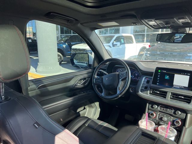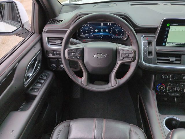 This 2022 Chevrolet Tahoe RST in Summit White features: 4D Sport Utility, EcoTec3 5.3L V8, 10-Speed Automatic with Overdrive, RWD, **LOCAL TRADE**, 10-Way Power Driver & Passenger Seat Adjusters, 10.25" Color Touchscreen, 1st & 2nd Row Color-Keyed Carpeted Floor Mats, 2nd Row Pwr Release 60/40 Split-Folding Bench Seat, 3rd Row 60/40 Power-Folding Split-Bench Seat, 3rd Row Seating, 3rd row seats: split-bench, 4-Wheel Disc Brakes, ABS brakes, AM/FM radio: SiriusXM with 360L, Android Auto, Apple Carplay, Apple CarPlay/Android Auto, Auto Emergency Braking, Auto High-beam Headlights, Auto LED Headlights, Auto-Dimming Inside Rear-View Mirror, Auto-dimming Rear-View mirror, Automatic Stop/Start, Automatic temperature control, Backup Camera, Blind Spot Monitoring, Bluetooth w/ Audio Streaming, Bose 9-Speaker Stereo Audio System Feature, Bose High End Sound Package, Brake assist, Bright Front & Rear Door Sill Plates, Cold Weather Package, Color-Keyed Carpeting Floor Covering, Compass, Delay-off headlights, Driver & Front Outboard Passenger Airbags, Driver Alert Package, Dual-Pane Power Panoramic Sunroof, Electronic Stability Control, Emergency communication system: OnStar and Chevrolet connected services capable, Enhanced Driver Information Center, Floor Console w/Storage Area, Following Distance Indicator, Four wheel independent suspension, Foward Collison Alert, Front & Rear Park Assist, Front Center Armrest, Front dual zone A/C, Front High-Back Reclining Bucket Seats, Front Pedestrian Braking, Fully automatic headlights, Garage door transmitter, Hands-Free Rear Power Programmable Liftgate, HD Surround Vision, HD Surround Vision, Heated 2nd Row Outboard Seats, Heated door mirrors, Heated Driver & Front Passenger Seats, Heated front seats, Heated Steering Wheel, Illuminated entry, Infotainment Display, Lane Change Alert, Lane Change Alert w/Side Blind Zone Alert, Lane Departure Warning, Lane Keeping System, Leather Seats, Leather steering wheel, Leather-Wrapped Steering Wheel, LED Daytime Running Lamps, Low tire pressure warning, Luxury Package, Mechanical Limited Slip Differential, Memory Package, Memory seat, Memory Settings, Memory Settings for Driver, Multi Zone Climate Control, Navigation System, Outside Heated Power-Adjustable Mirrors, Outside temperature display, Panic alarm, Panoramic Sunroof/Moonroof, Parking Sensors, Perforated Leather Seat Trim, Power door mirrors, Power Liftgate, Power Mirror Package, Power Package, Power passenger seat, Power Release 2nd Row Bucket Seats, Power Tilt & Telescopic Steering Column, Preferred Equipment Group 1SP, Preferred Equipment Package, Premium audio system: Chevrolet Infotainment System 3, Premium Smooth Ride Suspension, Premium Sound Package, Push Button Start, Radio: Chevrolet Infotainment 3 Premium System, Rain sensing wipers, Rear air conditioning, Rear Cross Traffic Alert, Rear Cross Traffic Alert, Rear Pedestrian Alert, Rear Pedestrian Alert, Rear seat center armrest, Rear window wiper, Remote keyless entry, Remote Start, Remote Start, Reverse Brake Assist, Reverse Sensing, Roof rack: rails only, Safety Package, Security system, Set of 4 Wheel Locks (LPO), SiriusXM Radio w/360L, Speed-sensing steering, Split folding rear seat, Spoiler, Start/Stop System Disable Button, Steering wheel mounted audio controls, Telescoping steering wheel, Tilt steering wheel, Traction control, Trip computer, Universal Home Remote, Wheels: 22" x 9" Bright Machined, WiFi Hotspot Capable, Wireless Charging, Wireless Charging Pad.