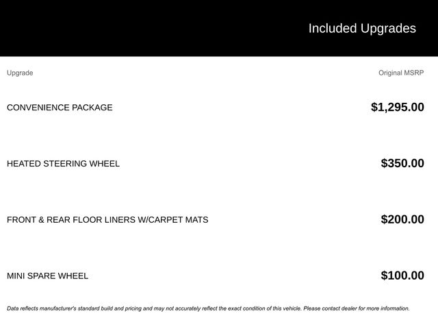 - Front & Rear Floor Liners w/Carpet Mats